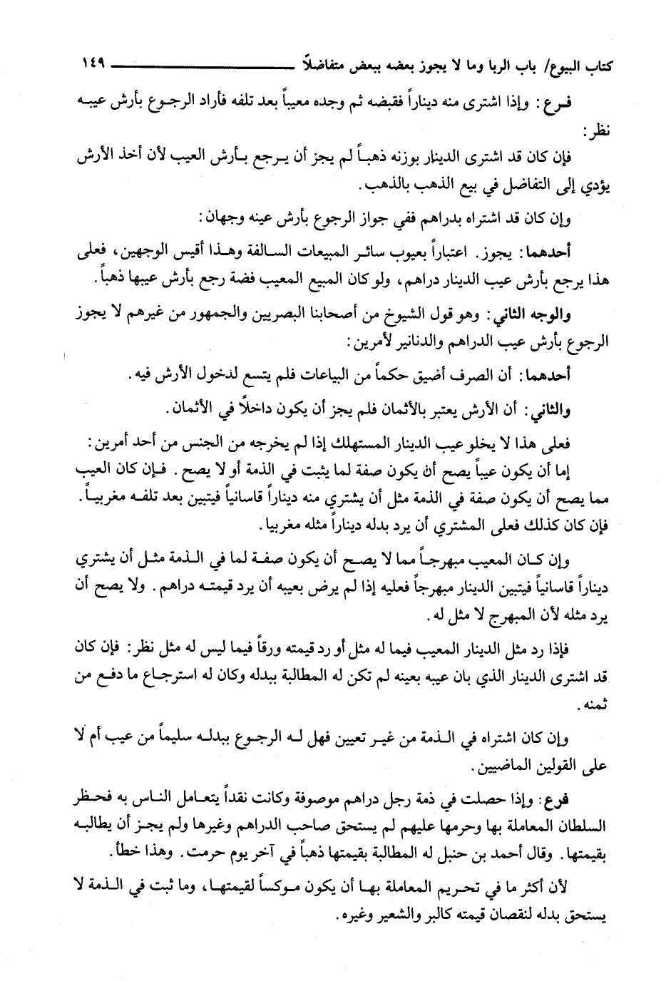 وَالْوَجْهُ الثَّانِي: وَهُوَ قَوْلُ الشُّيُوخِ مِنْ أَصْحَابِنَا الْبَصْرِيِّينَ وَالْجُمْهُورِ مِنْ غَيْرِهِمْ لَا يَجُوزُ الرُّجُوعُ بِأَرْشِ عَيْبِ الدَّرَاهِمِ وَالدَّنَانِيرِ لِأَمْرَيْنِ:
