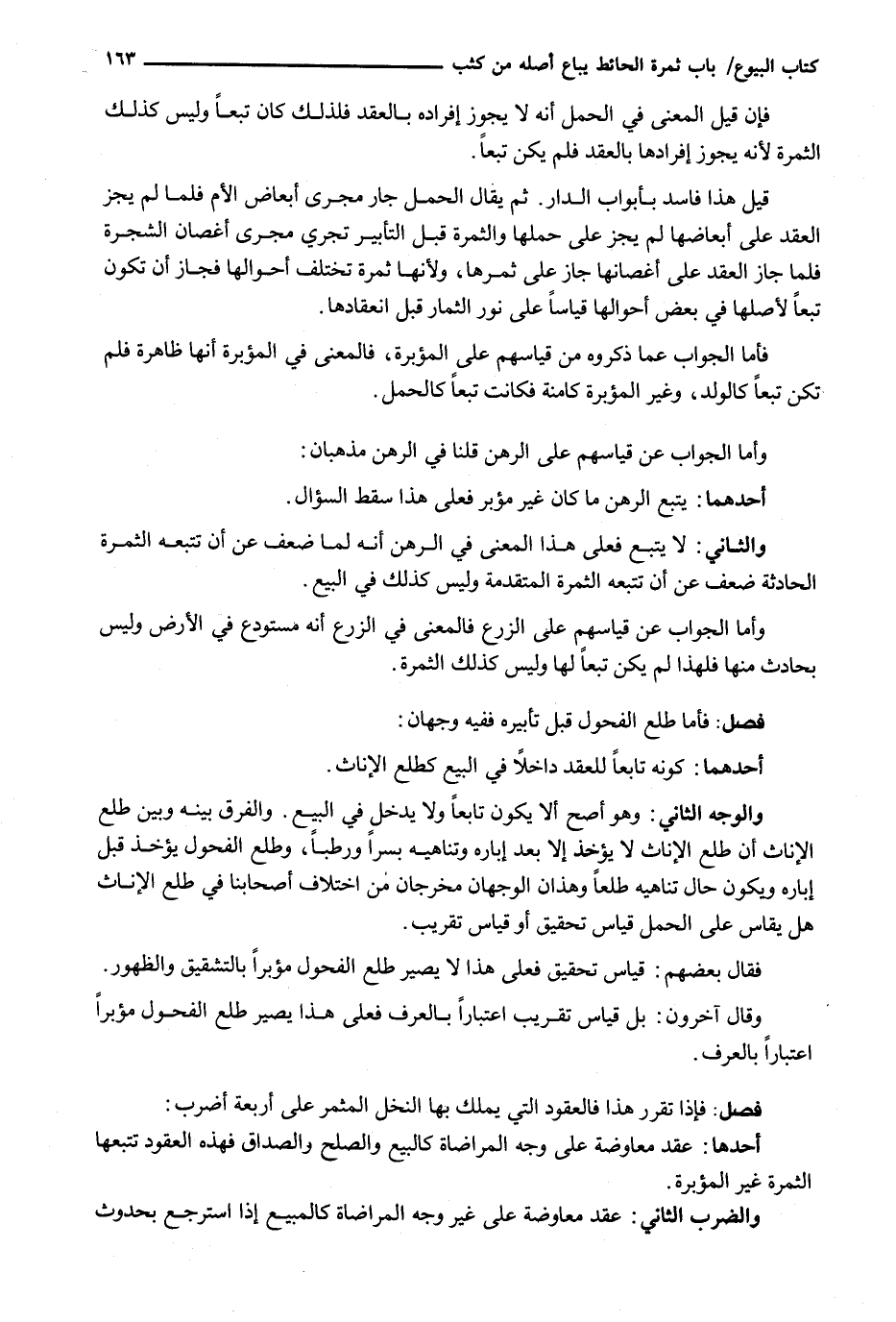 قِيلَ هَذَا فَاسِدٌ بِأَبْوَابِ الدَّارِ. ثُمَّ يُقَالُ الْحَمْلُ جَارٍ مَجْرَى أَبْعَاضِ الْأُمِّ فَلَمَّا لَمْ يَجُزِ الْعَقْدُ عَلَى أَبْعَاضِهَا لَمْ يَجُزْ عَلَى حَمْلِهَا وَالثَّمَرَةُ قَبْلَ التَّأْبِيرِ تَجْرِي مَجْرَى أَغْصَانِ الشَّجَرَةِ فَلَمَّا جَازَ الْعَقْدُ عَلَى أَغْصَانِهَا جَازَ عَلَى ثَمَرِهَا، وَلِأَنَّهَا ثَمَرَةٌ تَخْتَلِفُ أَحْوَالُهَا فَجَازَ أَنْ تَكُونَ تَبَعًا لِأَصْلِهَا فِي بَعْضِ أَحْوَالِهَا قِيَاسًا عَلَى نَوْرِ الثِّمَارِ قَبْلَ انْعِقَادِهَا.