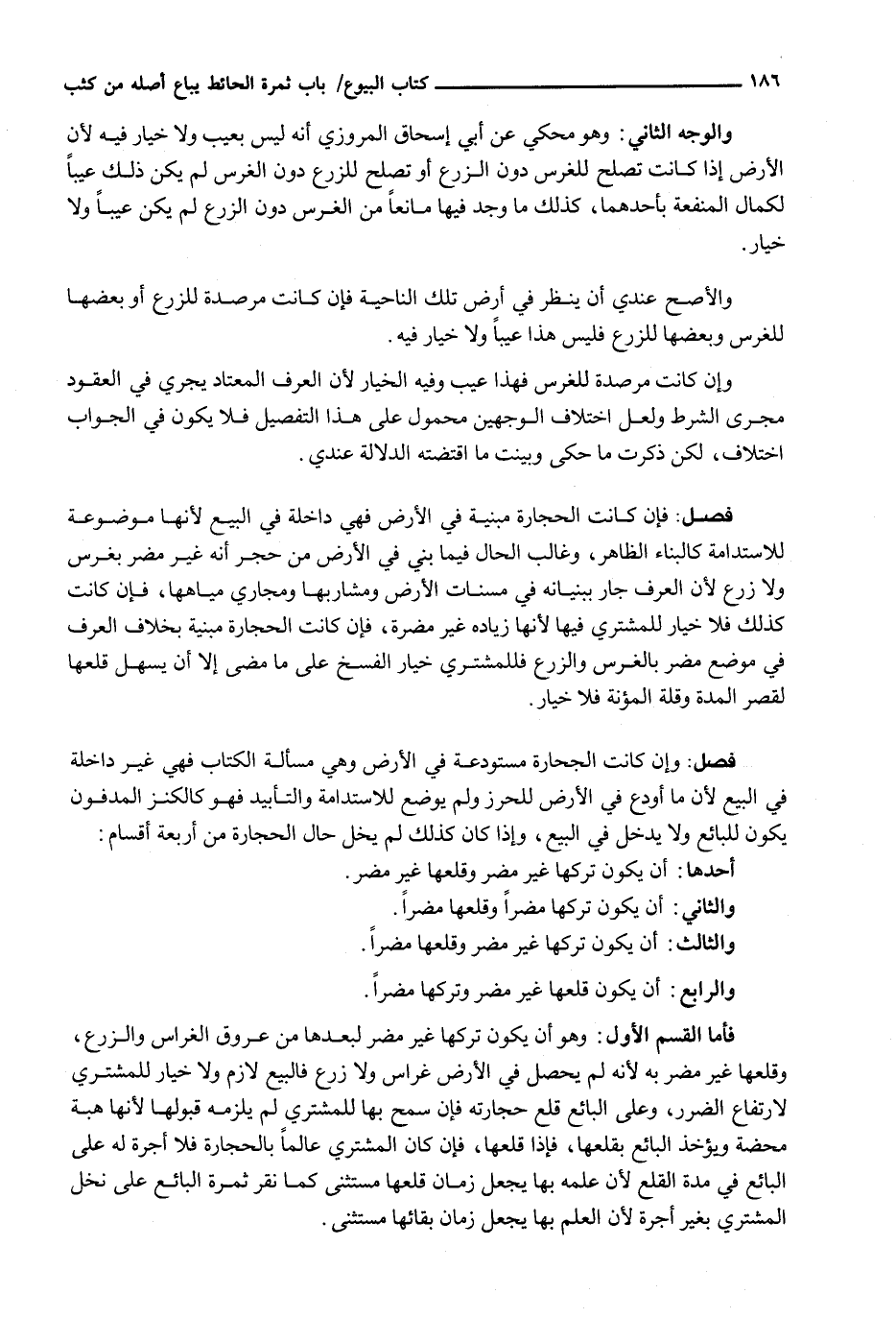 وَالْأَصَحُّ عِنْدِي أَنْ يَنْظُرَ فِي أَرْضِ تِلْكَ النَّاحِيَةِ فَإِنْ كَانَتْ مُرْصَدَةً لِلزَّرْعِ أَوْ بَعْضُهَا لِلْغَرْسِ وَبَعْضُهَا لِلزَّرْعِ فَلَيْسَ هَذَا عَيْبًا وَلَا خِيَارَ فِيهِ.