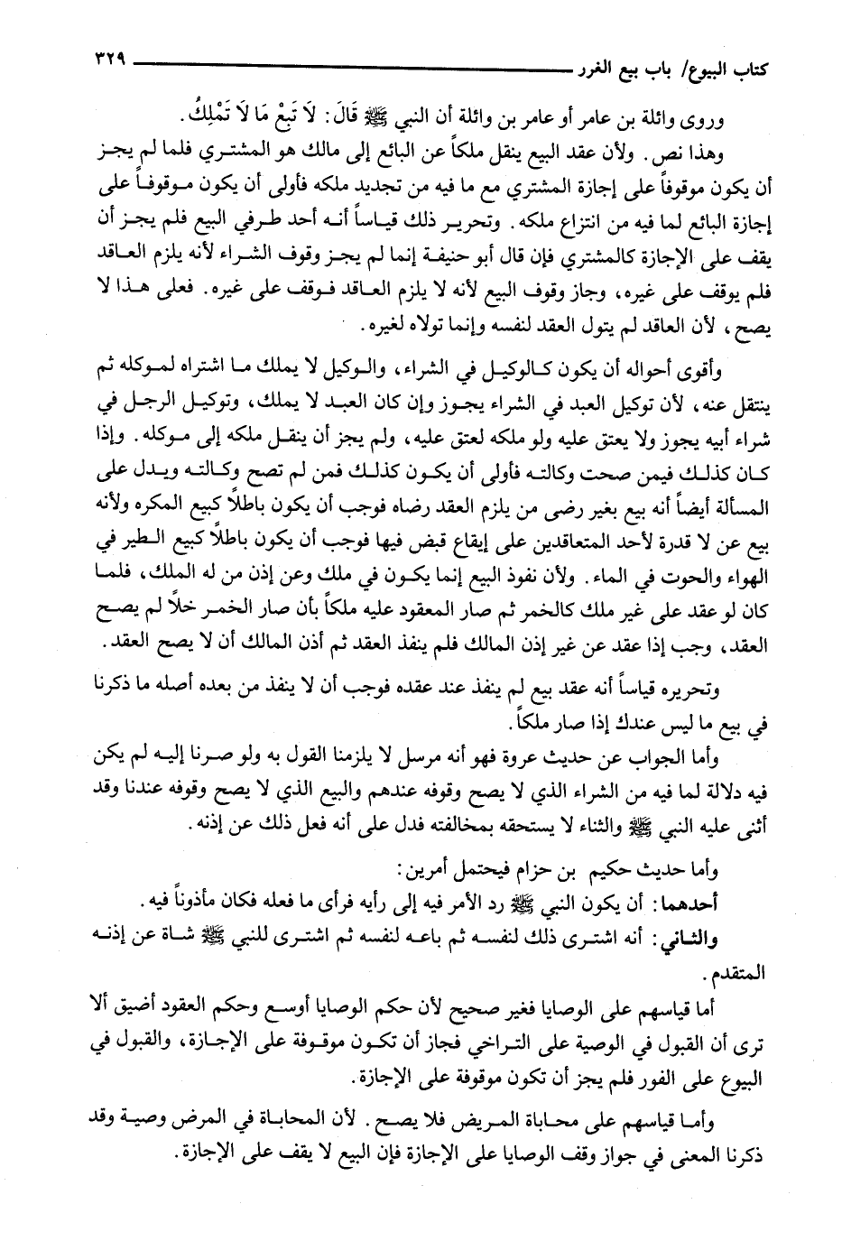 وَهَذَا نَصٌّ. وَلِأَنَّ عَقْدَ الْبَيْعِ يَنْقُلُ مِلْكًا عَنِ البائع إلى مالك هو المشتري فلم لَمْ يَجُزْ أَنْ يَكُونَ مَوْقُوفًا عَلَى إِجَازَةِ الْمُشْتَرِي مَعَ مَا فِيهِ مِنْ تَجْدِيدِ مِلْكِهِ فأولى أن يَكُونَ مَوْقُوفًا عَلَى إِجَازَةِ الْبَائِعِ لِمَا فِيهِ مِنِ انْتِزَاعِ مِلْكِهِ. وَتَحْرِيرُ ذَلِكَ قِيَاسًا أَنَّهُ أَحَدُ طَرَفَيِ الْبَيْعِ فَلَمْ يَجُزْ أَنْ يَقِفَ عَلَى الْإِجَازَةِ كَالْمُشْتَرِي فَإِنْ قَالَ أبو حنيفة إِنَّمَا لَمْ يَجُزْ وُقُوفُ الشِّرَاءِ لِأَنَّهُ يَلْزَمُ الْعَاقِدُ فَلَمْ يُوقِفْ عَلَى غَيْرِهِ، وَجَازَ وُقُوفُ الْبَيْعِ لِأَنَّهُ لَا يَلْزَمُ الْعَاقِدُ فَوَقَفَ عَلَى غَيْرِهِ. فَعَلَى هَذَا لَا يَصِحُّ، لِأَنَّ الْعَاقِدَ لَمْ يَتَوَلَّ الْعَقْدَ لِنَفْسِهِ وَإِنَّمَا تَوَلَّاهُ لِغَيْرِهِ.