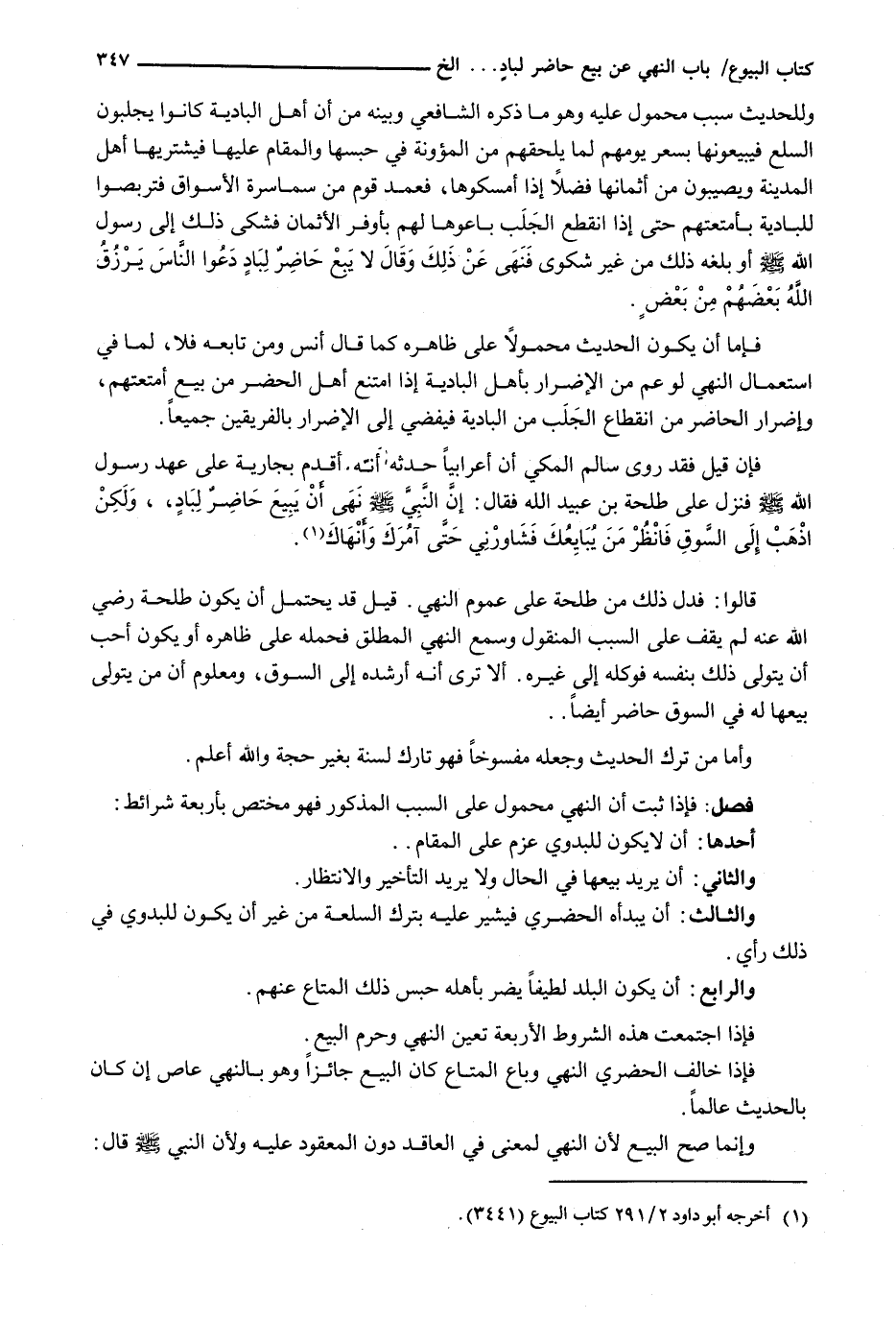 فَإِذَا ثَبَتَ أَنَّ النَّهْيَ مَحْمُولٌ عَلَى السَّبَبِ الْمَذْكُورِ فَهُوَ مُخْتَصٌّ بِأَرْبَعَةِ شَرَائِطَ: