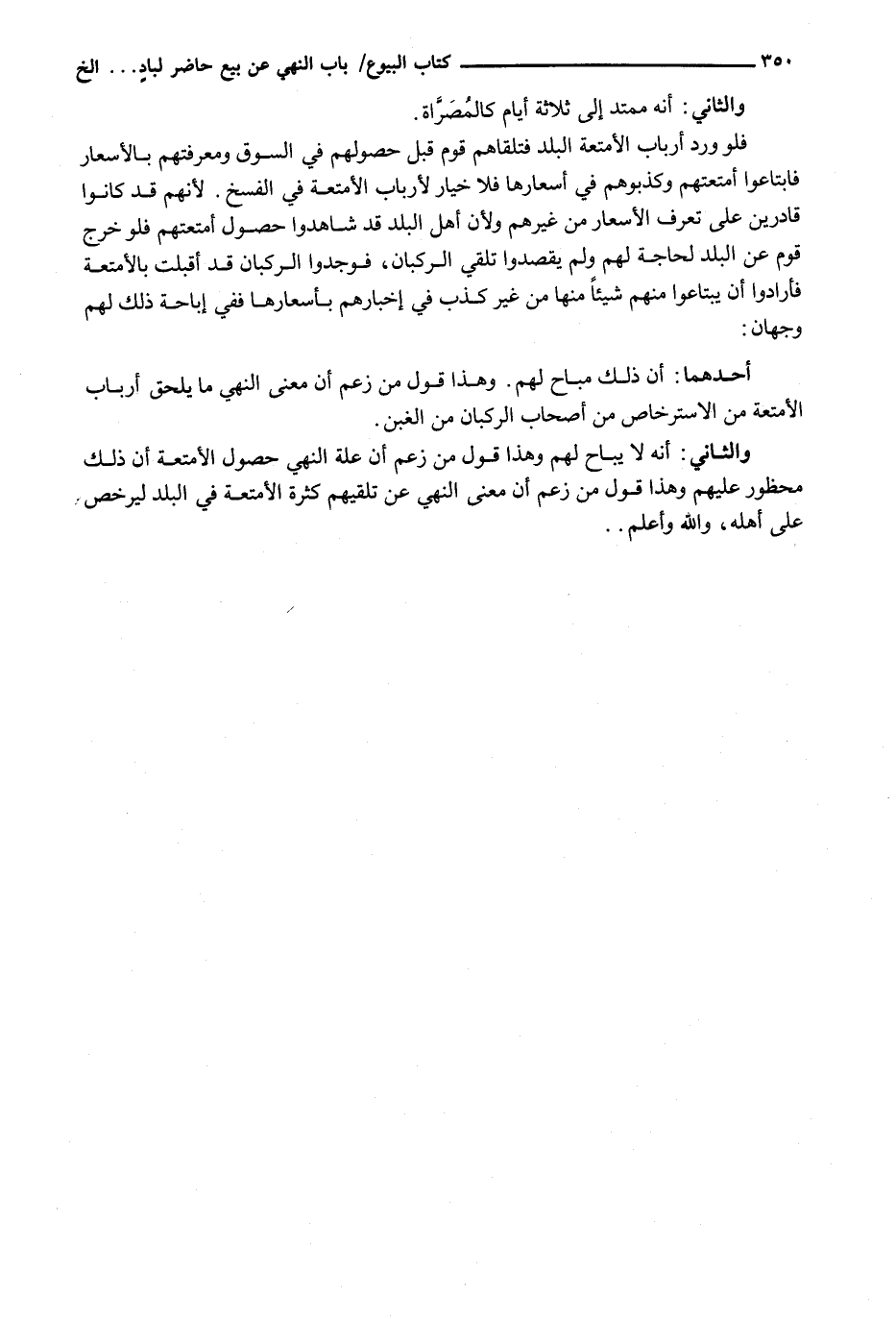 وَالثَّانِي: أَنَّهُ لَا يُبَاحُ لَهُمْ وَهَذَا قَوْلُ مَنْ زَعَمَ أَنَّ عِلَّةَ النَّهْيِ حُصُولُ الْأَمْتِعَةِ أن ذلك محظور عليهم وَهَذَا قَوْلُ مَنْ زَعَمَ أَنَّ مَعْنَى النَّهْيِ عن تلقيهم كثرة الْأَمْتِعَةِ فِي الْبَلَدِ لِيَرْخُصَ عَلَى أَهْلِهِ، وَاللَّهُ أعلم.