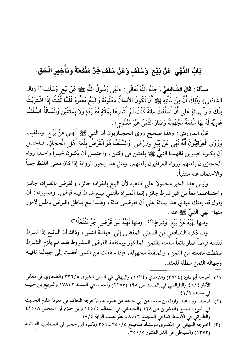 وَمِنْهَا نَهْيُهُ عَنْ بَيْعٍ وَشَرْطٍ. وَمِنْهَا نَهْيُهُ عَنْ قَرْضٍ جَرَّ مَنْفَعَةً.