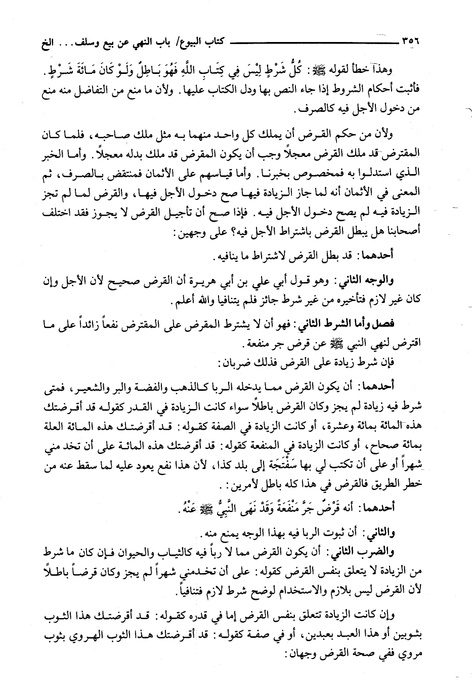 وَلِأَنَّ مِنْ حُكْمِ الْقَرْضِ أَنْ يُمَلَّكَ كُلُّ وَاحِدٍ مِنْهُمَا بِهِ مِثْلَ مِلْكِ صَاحِبِهِ، فَلَمَّا كَانَ الْمُقْتَرِضُ قَدْ مَلَكَ الْقَرْضَ مُعَجَّلًا وَجَبَ أَنْ يَكُونَ الْمُقْرِضُ قَدْ مَلَكَ بَدَلَهُ مُعَجَّلًا. وَأَمَّا الْخَبَرُ الَّذِي اسْتَدَلُّوا بِهِ فَمَخْصُوصٌ بِخَبَرِنَا. وَأَمَّا قِيَاسُهُمْ عَلَى الْأَثْمَانِ فَمُنْتَقِضٌ بِالصَّرْفِ، ثُمَّ الْمَعْنَى فِي الْأَثْمَانِ أَنَّهُ لَمَّا جَازَ الزِّيَادَةُ فِيهَا صَحَّ دُخُولُ الْأَجَلِ فِيهَا، وَالْقَرْضُ لَمَّا لَمْ تَجُزِ الزِّيَادَةُ فِيهِ لَمْ يَصِحَّ دُخُولُ الْأَجَلِ فِيهِ. فَإِذَا صَحَّ أَنَّ تَأْجِيلَ الْقَرْضِ لَا يَجُوزُ فَقَدِ اخْتَلَفَ أَصْحَابُنَا هَلْ يُبْطَلُ الْقَرْضُ بِاشْتِرَاطِ الْأَجَلِ فِيهِ؟ عَلَى وَجْهَيْنِ:
