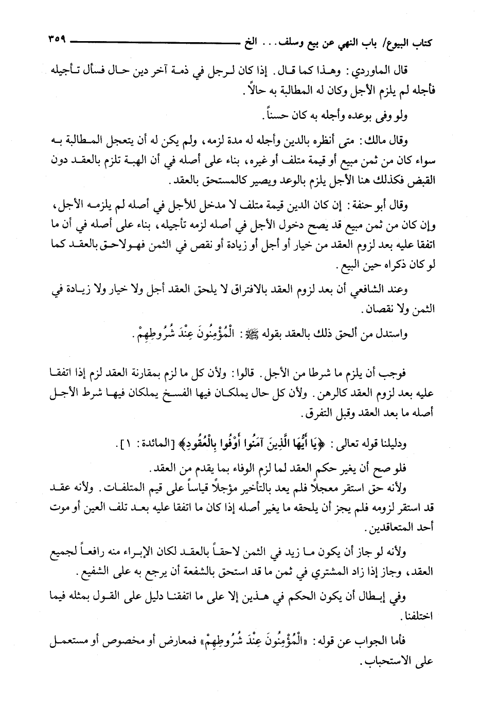 فَوَجَبَ أَنْ يَلْزَمَ مَا شَرَطَا مِنَ الْأَجَلِ. قَالُوا: وَلِأَنَّ كُلَّ مَا لَزِمَ بِمُقَارَنَةِ الْعَقْدِ لَزِمَ إِذَا اتَّفَقَا عَلَيْهِ بَعْدَ لُزُومِ الْعَقْدِ كَالرَّهْنِ. وَلِأَنَّ كُلَّ حَالٍ يملكان فيها الفسخ يملكان فيها شَرْطَ الْأَجَلِ أَصْلُهُ مَا بَعْدَ الْعَقْدِ وَقَبْلَ التَّفَرُّقِ.