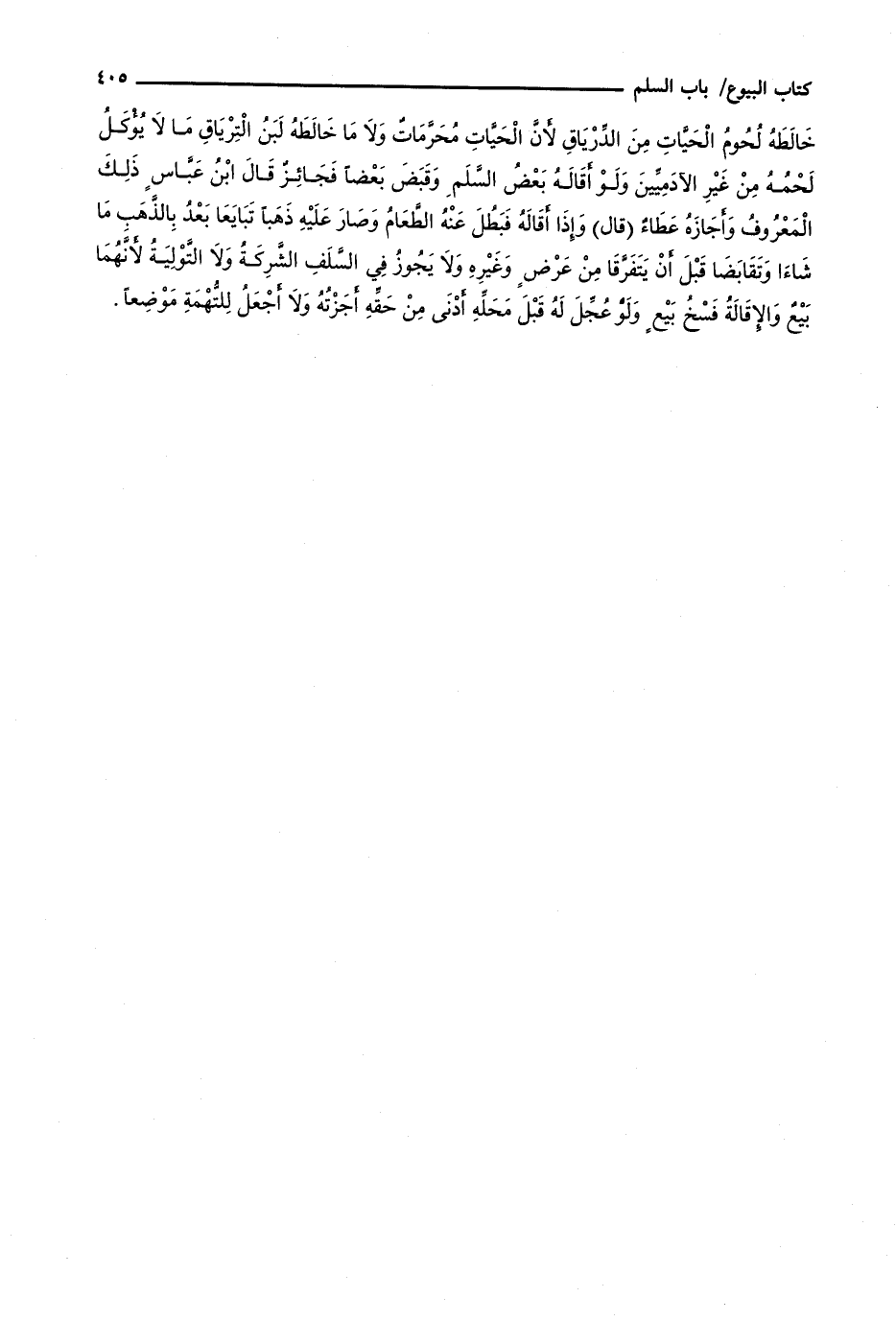 خالطه لحوم الحيات من الدرياق لأن الحيات محرمات ولا ما خالطه لبن الترياق ما لا يؤكل لحمه من غير الآدميين ولو أقاله بعض السلم وقبض بعضا فجائز قال ابن عباس ذلك المعروف وأجازه عطاء (قال) وإذا أقاله فبطل عنه الطعام وصار عليه ذهبا تبايعا بعد بالذهب ما شاءا وتقابضا قبل أن يتفرقا من عرض وغيره ولا يجوز في السلف الشركة ولا التولية لأنهما بيع والإقالة فسخ بيع ولو عجل له قبل محله أدنى من حقه أجزته ولا أجعل للتهمة موضعا ".