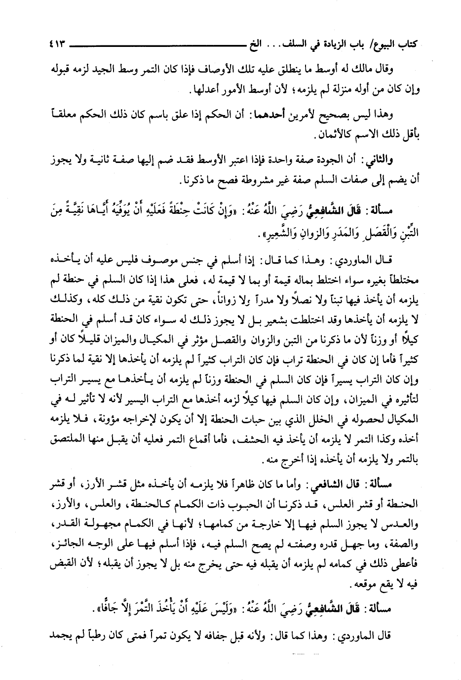قال الشافعي رضي الله عنه: " وَإِنْ كَانَتْ حِنْطَةً فَعَلَيْهِ أَنْ يُوَفِّيَهُ إِيَّاهَا نَقِيَّةً مِنَ التِّبْنِ وَالْقَصَلِ وَالْمَدَرِ وَالزُّوَانِ وَالشَّعِيرِ ".