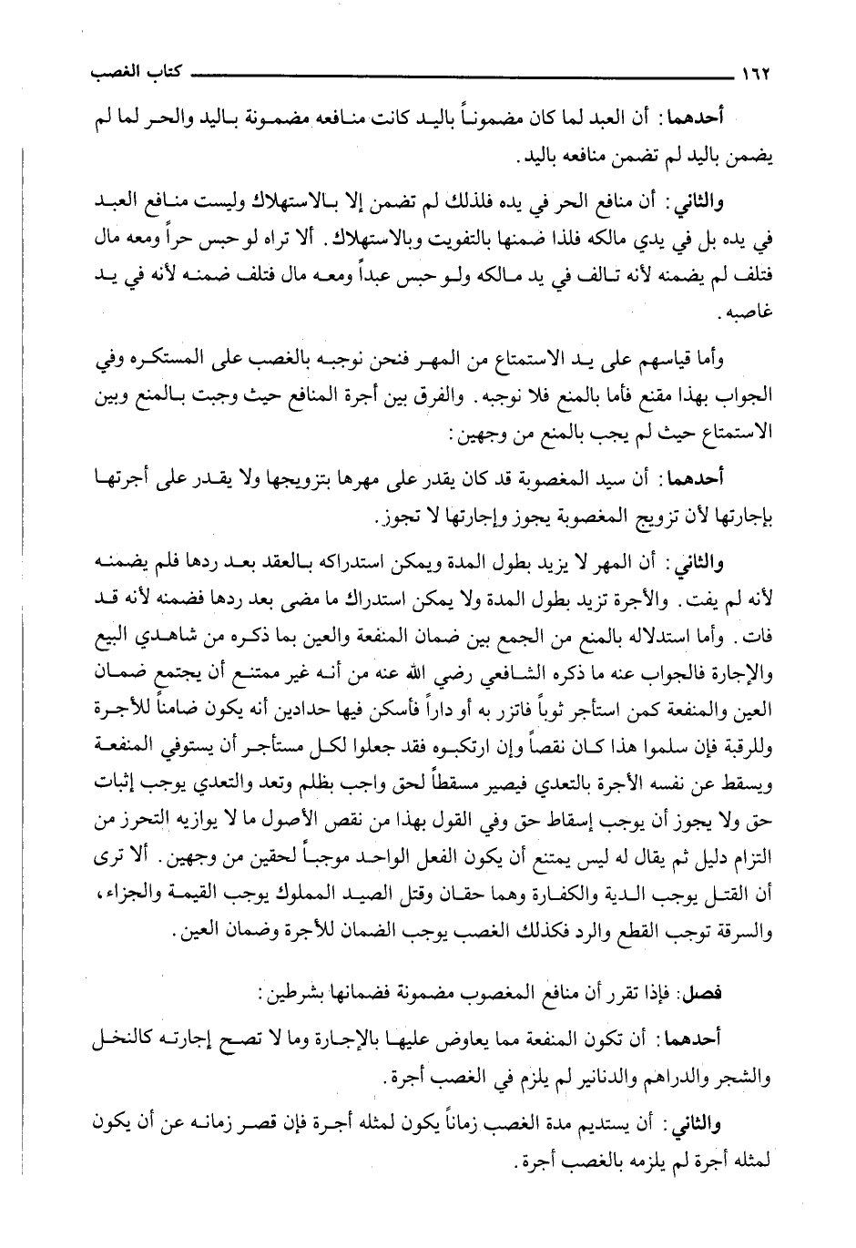 أَحَدُهُمَا: أَنْ تَكُونَ الْمَنْفَعَةُ مِمَّا يعاوض عليهما بِالْإِجَارَةِ وَمَا لَا تَصِحُّ إِجَارَتُهُ كَالنَّخْلِ وَالشَّجَرِ وَالدَّرَاهِمِ وَالدَّنَانِيرِ لَمْ يُلْزِمْ فِي الْغَصْبِ أُجْرَةً.