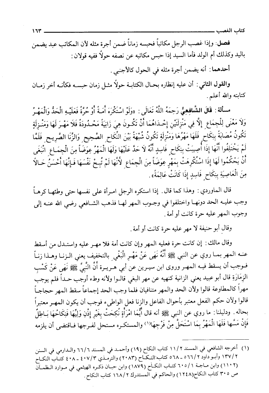 قال الشافعي رحمه الله تعالى: " وَلَوِ اسْتَكْرَهَ أَمَةً أَوْ حُرَّةً فَعَلَيْهِ الْحَدُّ وَالْمَهْرُ وَلَا مَعْنَى لِلْجِمَاعِ إِلَّا فِي مَنْزِلَتَيْنِ إِحْدَاهُمَا أَنْ تَكُونَ هِيَ زَانِيَةً مَحْدُودَةً فَلَا مهر لا ومنزلةٍ تَكُونُ مصابةٌ بنكاحٍ فَلَهَا مَهْرُهَا ومنزلةٍ تَكُونُ شُبْهَةً بَيْنَ النِّكَاحِ الصَّحِيحِ وَالزِّنَا الصَرِيحِ فَلَمَّا لَمْ يَخْتَلِفُوا أَنَّهَا إِذَا أُصِيبَتْ بنكاحٍ فاسدٍ أَنَّهُ لَا حَدَّ عَلَيْهَا وَلَهَا الْمَهْرُ عِوَضَا مِنَ الْجِمَاعِ انْبَغَى أَنْ يَحْكُمُوا لَهَا إِذَا اسْتُكْرِهَتْ بمهرٍ عِوَضَا مِنَ الْجِمَاعِ لِأَنَّهَا لَمْ تُبِحْ نَفْسَهَا فَإِنَّهَا أَحْسَنُ حَالًا مِنَ الْعَاصِيَةِ بنكاحٍ فاسدٍ إِذَا كَانَتْ عَالِمَةً ".