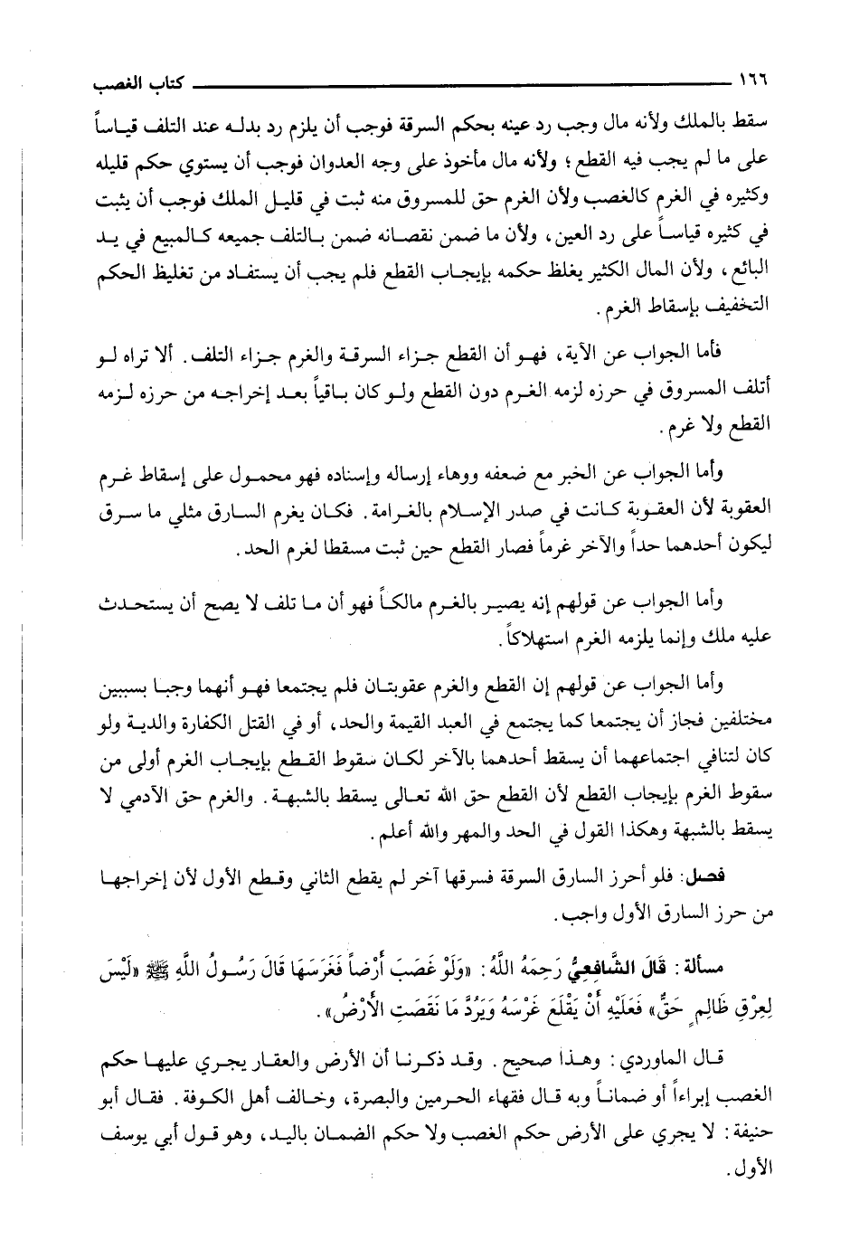 قَالَ الْمَاوَرْدِيُّ: وَهَذَا صَحِيحٌ. وَقَدْ ذَكَرْنَا أَنَّ الْأَرْضَ وَالْعَقَارَ يجري عليها حكم الغصب إبراءاً أَوْ ضَمَانًا وَبِهِ قَالَ فُقَهَاءُ الْحَرَمَيْنِ وَالْبَصْرَةِ، وَخَالَفَ أَهْلُ الْكُوفَةِ. فَقَالَ أبو حنيفة: لَا يَجْرِي عَلَى الْأَرْضِ حُكْمُ الْغَصْبِ وَلَا حُكْمُ الضَّمَانِ بِالْيَدِ، وَهُوَ قَوْلُ أبي يوسف الْأَوَّلُ.