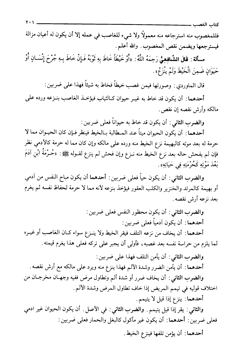 قَالَ الْمَاوَرْدِيُّ: وَصُورَتُهَا فِيمَنْ غَصَبَ خَيْطًا فَخَاطَ بِهِ شَيْئًا فَهَذَا عَلَى ضَرْبَيْنِ: