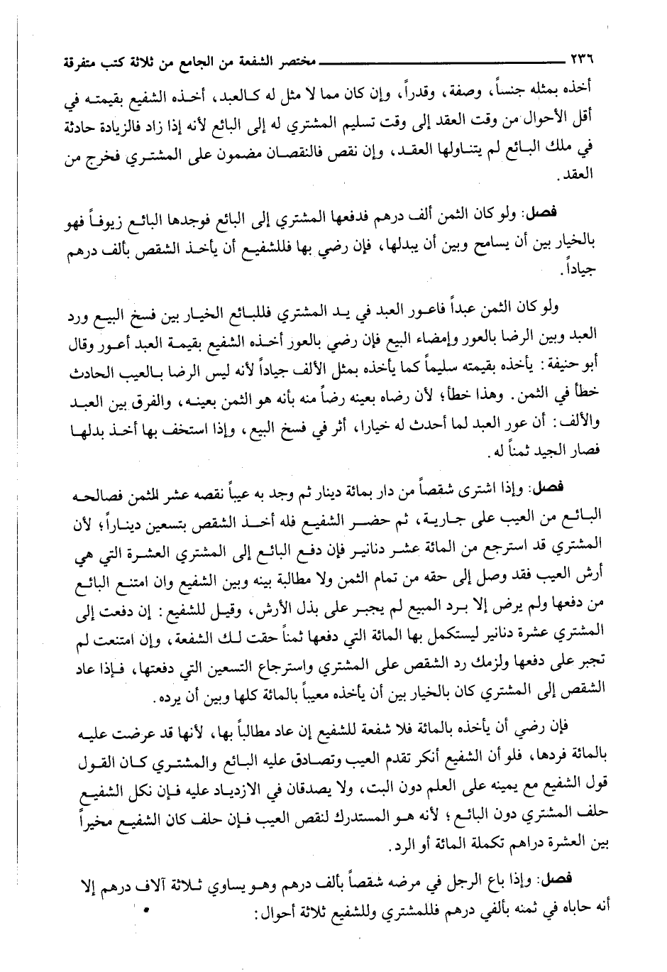 : وَإِذَا بَاعَ الرَّجُلُ فِي مَرَضِهِ شِقْصًا بِأَلْفِ دِرْهَمٍ وَهُوَ يُسَاوِي ثَلَاثَةَ آلَافِ دِرْهَمٍ إِلَّا أَنَّهُ حَابَاهُ فِي ثَمَنِهِ بِأَلْفَيْ درهم فللمشتري وللشفيع ثلاثة أحوال: