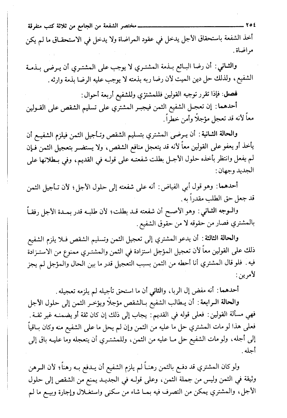 والحالة الرَّابِعَةُ: أَنْ يُطَالِبَ الشَّفِيعَ بِالشِّقْصِ مُؤَجَّلًا وَيُؤَخِّرَ الثَّمَنَ إِلَى حُلُولِ الْأَجَلِ فَهِيَ مَسْأَلَةُ الْقَوْلَيْنِ: فَعَلَى قَوْلِهِ فِي الْقَدِيمِ: يُجَابُ إِلَى ذَلِكَ إِنْ كَانَ ثِقَةً أَوْ يَضْمَنُهُ غَيْرَ ثِقَةٍ. فَعَلَى هَذَا لَوْ مَاتَ الْمُشْتَرِي حَلَّ مَا عَلَيْهِ مِنَ الثَّمَنِ وَإِنْ لَمْ يَحِلَّ مَا على الشفيع منه وَكَانَ بَاقِيًا إِلَى أَجَلِهِ، وَلَوْ مَاتَ الشَّفِيعُ حَلَّ مَا عَلَيْهِ مِنَ الثَّمَنِ، وَلِلْمُشْتَرِي أَنْ يَتَعَجَّلَهُ وَمَا عَلَيْهِ بَاقٍ إِلَى أَجَلِهِ.