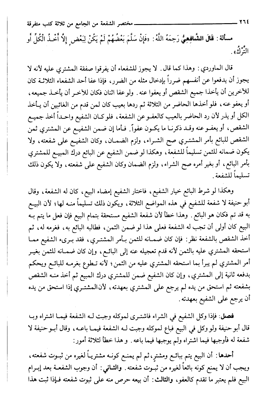 قَالَ الشَّافِعِيُّ رَحِمَهُ اللَّهُ: " فَإِنْ سَلَّمَ بَعْضُهُمْ لَمْ يَكُنْ لبعضٍ إِلَّا أَخْذُ الْكُلِّ أَوِ التَّرْكُ ".