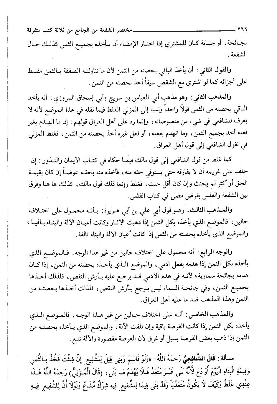 قَالَ الشَّافِعِيُّ رَحِمَهُ اللَّهُ: " وَلَوْ قَاسَمَ وَبَنَى قِيلَ لِلشَّفِيعِ إِنْ شِئْتَ فَخُذْ بِالثَّمَنِ وَقِيمَةِ الْبِنَاءِ الْيَوْمَ أَوْ دَعْ لِأَنَّهُ بَنَى غَيْرَ متعد فلا يهدم ما بنى، (قال المزني) رحمه الله هذا عندي غلطٌ وكيف لا يكون متعدياً وقد بنى فيما للشفيع فيه شركٌ مشاعٌ ولولا أن للشفيع فيه