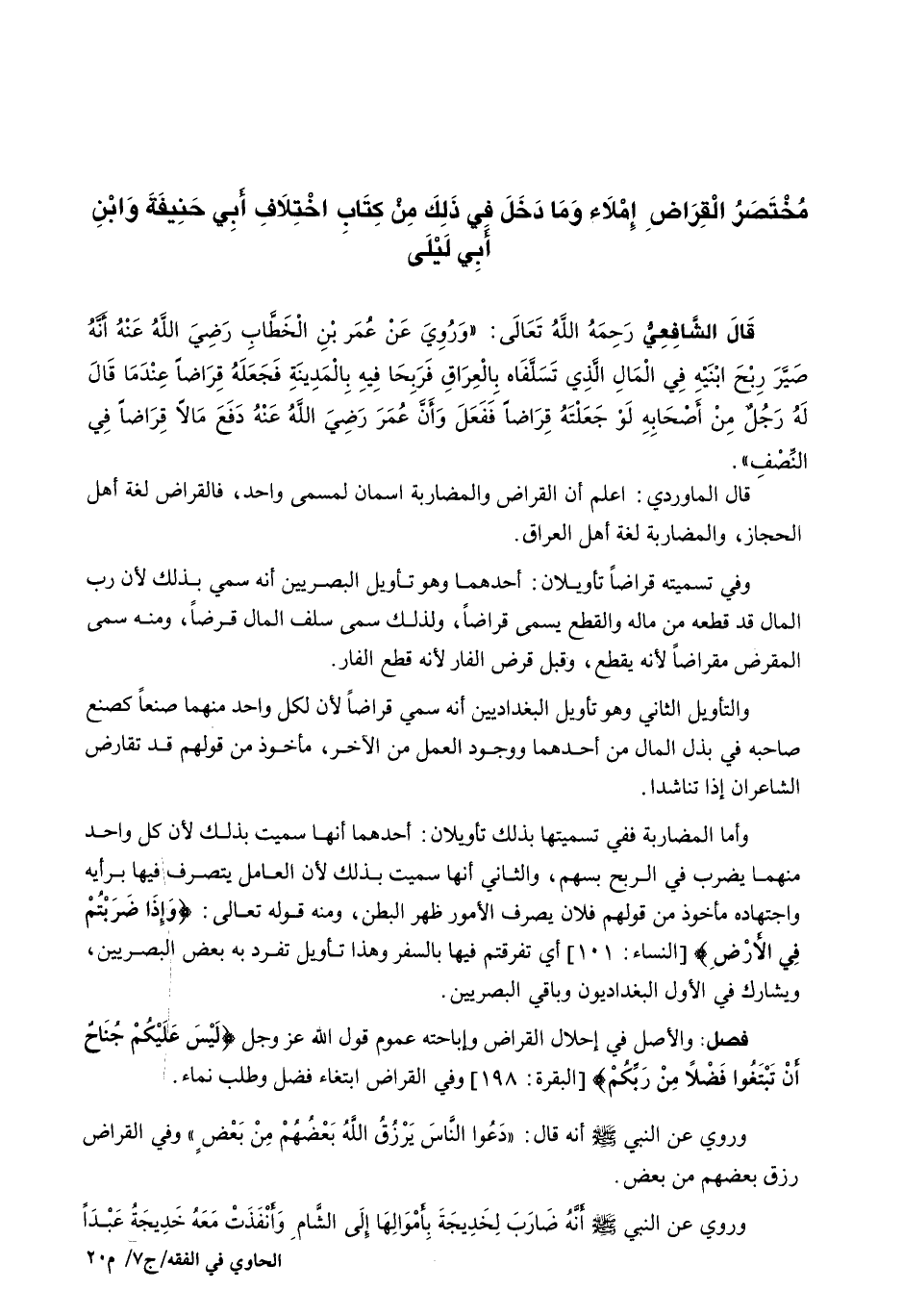 مختصر القراض إملاء وما دخل في ذلك من كِتَابِ اخْتِلَافِ أَبِي حَنِيفَةَ وَابْنِ أَبِي لَيْلَى