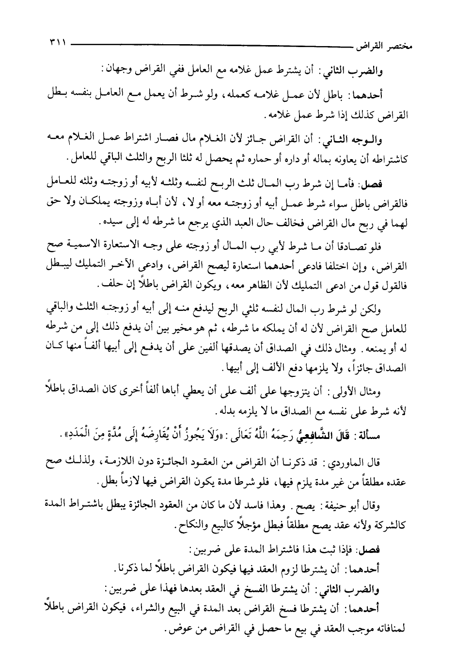 قال الشافعي رحمه الله تعالى: " وَلَا يَجُوزُ أَنْ يُقَارِضَهُ إِلَى مدةٍ مِنَ الْمُدَدِ ".