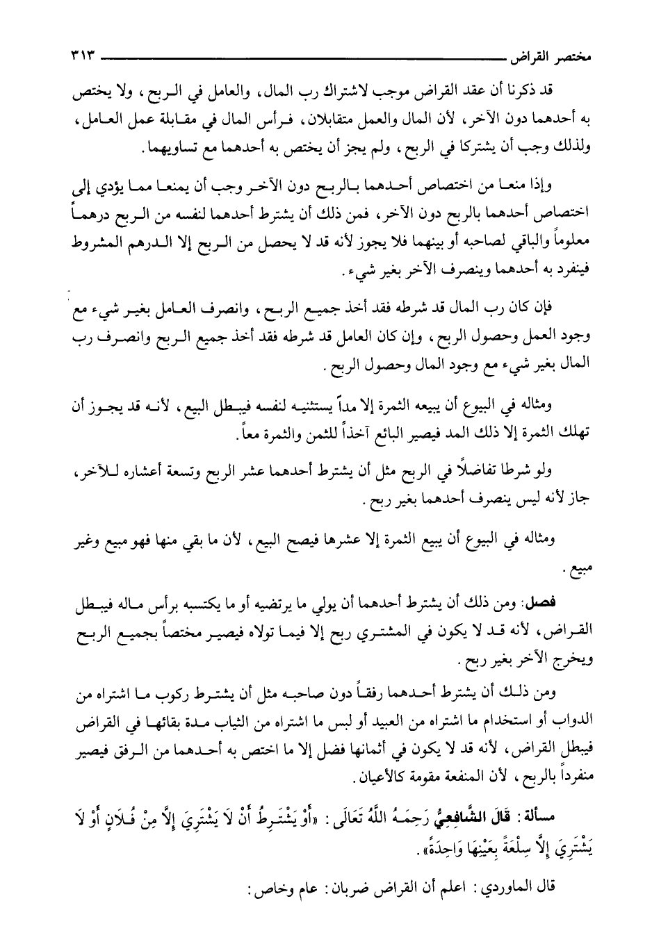 قَالَ الْمَاوَرْدِيُّ: اعْلَمْ أَنَّ الْقِرَاضَ ضَرْبَانِ: عام وخاص: