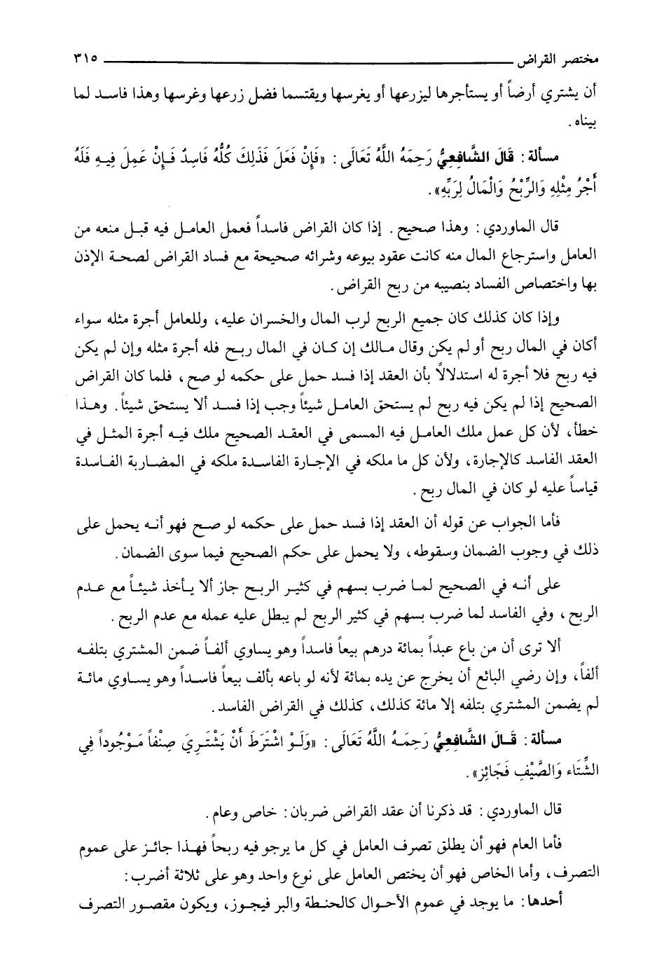 قَالَ الْمَاوَرْدِيُّ: قَدْ ذَكَرْنَا أَنَّ عَقْدَ الْقِرَاضِ ضَرْبَانِ: خَاصٌّ وَعَامٌّ.
