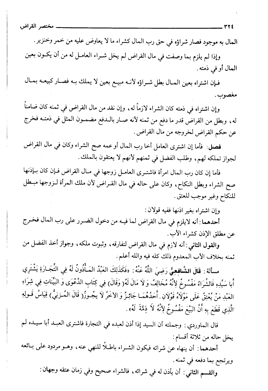 وَالْقَوْلُ الثَّانِي: أَنَّهُ لَازِمٌ فِي مَالِ الْقِرَاضِ لِتَفَارُقِهِ، وَثُبُوتِ مِلْكِهِ، وَجَوَازِ أَخْذِ الْفَضْلِ مِنْ ثَمَنِهِ بِخِلَافِ الْأَبِ الْمَعْدُومِ ذَلِكَ كُلِّهُ فيه والله أعلم.