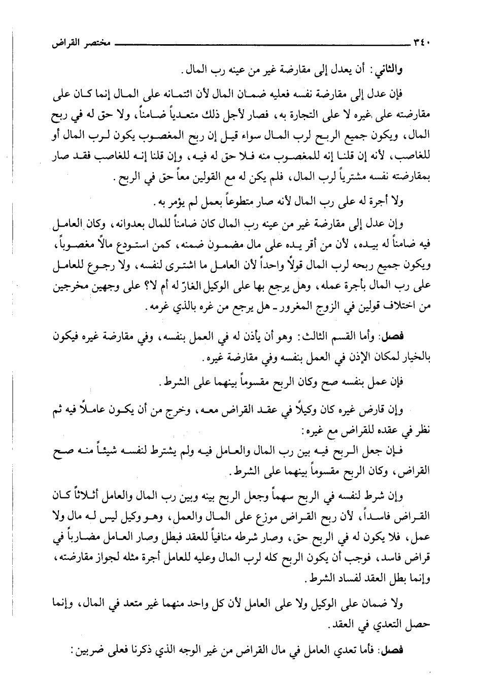 : فَأَمَّا تَعَدِّي الْعَامِلِ فِي مَالِ الْقِرَاضِ مِنْ غَيْرِ الْوَجْهِ الَّذِي ذَكَرْنَا فَعَلَى ضَرْبَيْنِ: