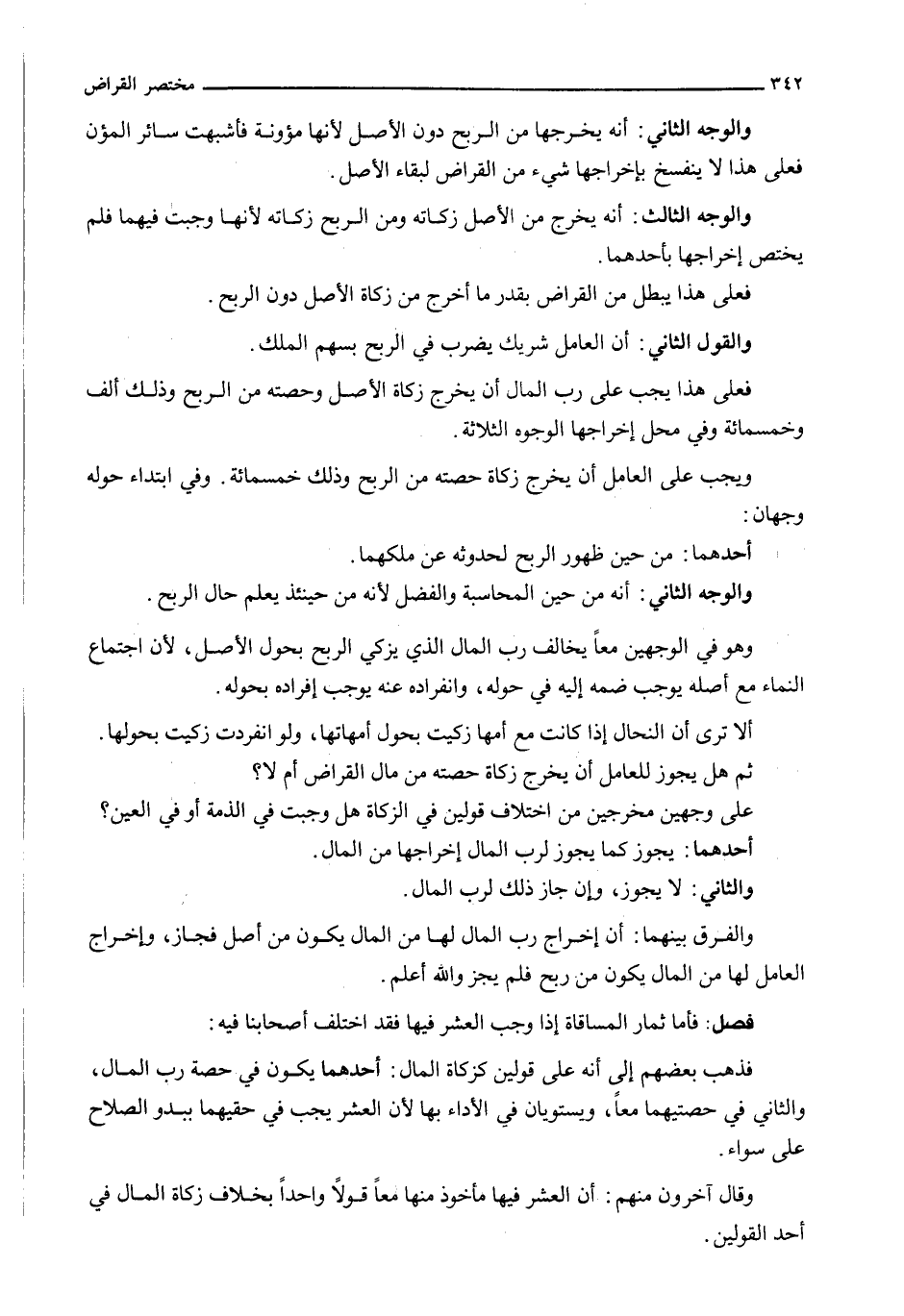 فَعَلَى هَذَا يَبْطُلُ مِنَ الْقِرَاضِ بِقَدْرِ مَا أَخْرَجَ مِنْ زَكَاةِ الْأَصْلِ دُونَ الرِّبْحِ.
