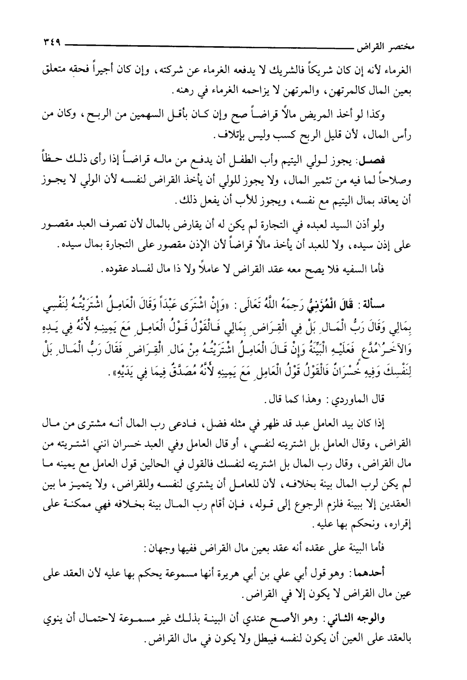 قال المزني رحمه الله تعالى: " وَإِنِ اشْتَرَى عَبْدًا وَقَالَ الْعَامِلُ اشْتَرَيْتُهُ لِنَفْسِي بِمَالِي وَقَالَ رَبُّ الْمَالِ بَلْ فِي الْقِرَاضِ بِمَالِي فَالْقَوْلُ قَوْلُ الْعَامِلِ مَعَ يَمِينِهِ لِأَنَّهُ فِي يَدِهِ وَالْآخَرُ مدعٍ فَعَلَيْهِ الْبَيِّنَةُ وَإِنْ قَالَ الْعَامِلُ اشْتَرَيْتُهُ مِنْ مَالِ الْقِرَاضِ فَقَالَ رَبُّ الْمَالِ بَلْ لِنَفْسِكَ وَفِيهِ خسرانٌ فَالْقَوْلُ قَوْلُ الْعَامِلِ مَعَ يَمِينِهِ لِأَنَّهُ مصدقٌ فِيمَا فِي يَدَيْهِ ".