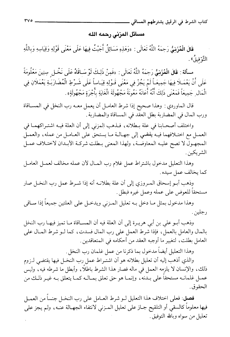 مسائل المزني رحمه الله