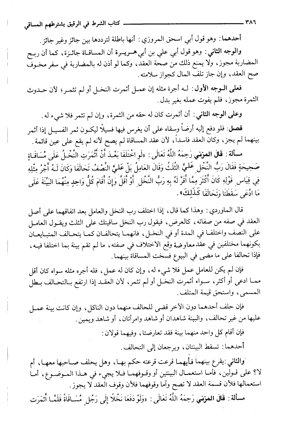 قَالَ الْمُزَنِيُّ رحمه الله تعالى: " وَلَوْ دَفَعَا نَخْلًا إِلَى رجلٍ مُسَاقَاةً فَلَمَّا أثمرت