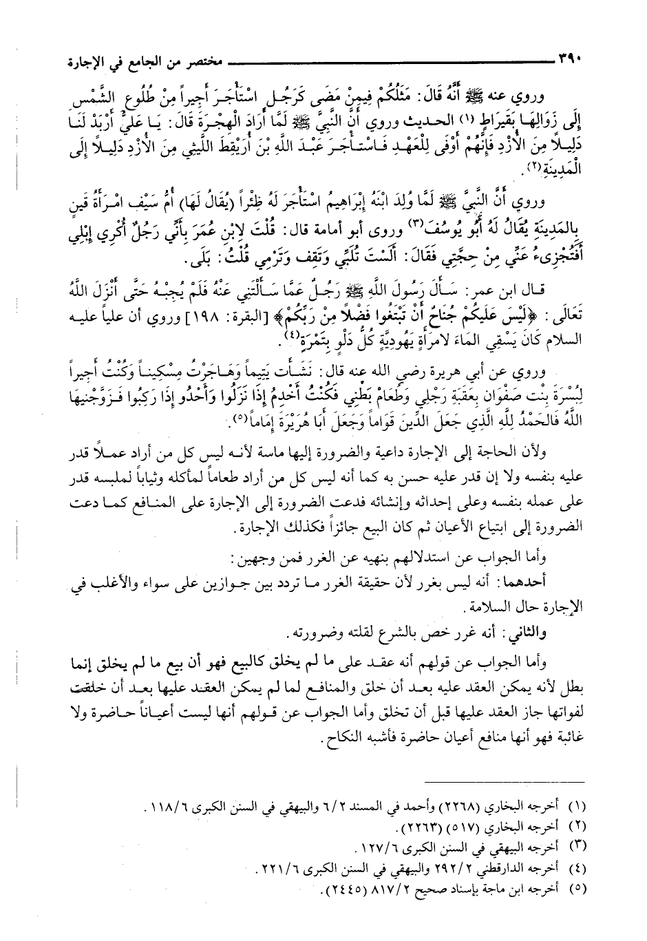 وَرُوِيَ أَنَّ النَّبِيَّ - صَلَّى اللَّهُ عَلَيْهِ وَسَلَّم َ - لَمَّا وُلِدَ ابْنُهُ إِبْرَاهِيمُ اسْتَأْجَرَ لَهُ ظِئْرًا (يُقَالُ لَهَا) أُمُّ سَيْفٍ امْرَأَةُ قينٍ بِالْمَدِينَةِ يُقَالُ لَهُ أَبُو يُوسُفَ وَرَوَى أَبُو أُمَامَةَ قَالَ: قُلْتُ لِابْنِ عُمَرَ بِأَنِّي رجلٌ أُكْرِيَ إِبِلِي أَفَتُجْزِئُ عَنِّي مِنْ حَجَّتِي فَقَالَ: أَلَسْتَ تُلَبِّي وَتَقِفُ وَتَرْمِي قُلْتُ: بَلَى.