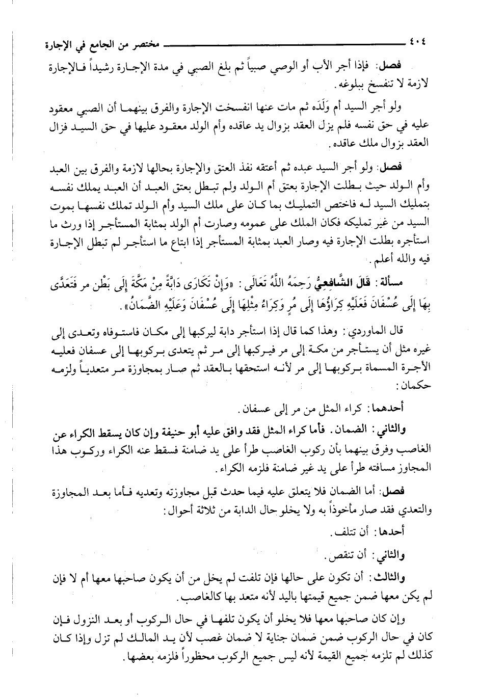 قال الشافعي رحمه الله تعالى: " وَإِنْ تَكَارَى دَابَّةً مِنْ مَكَّةَ إِلَى بَطْنِ مُرٍّ فَتَعَدَّى بِهَا إِلَى عُسْفَانَ فَعَلَيْهِ كِرَاؤُهَا إِلَى مرٍ وَكِرَاءُ مِثْلِهَا إِلَى عُسْفَانَ وَعَلَيْهِ الضَّمَانُ ".