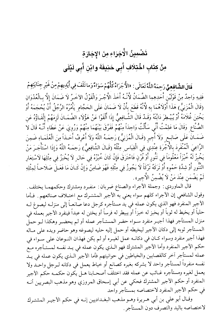 تضمين الأجراء من الإجارة من كِتَابِ اخْتِلَافِ أَبِي حَنِيفَةَ وَابْنِ أَبِي لَيْلَى