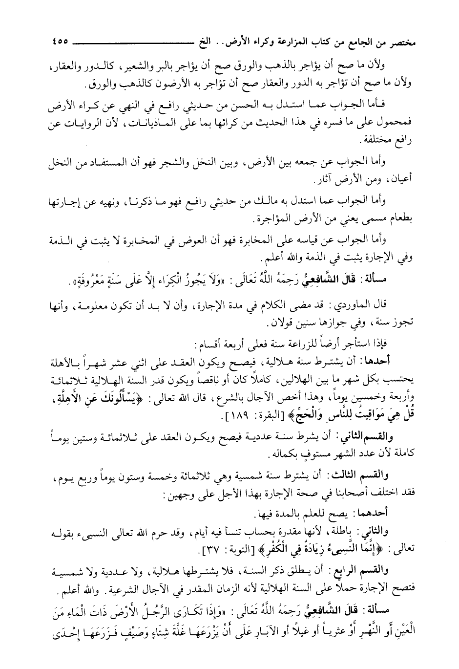 قال الشافعي رحمه الله تعالى: " وَلَا يَجُوزُ الْكِرَاءُ إِلَّا عَلَى سنةٍ معروفةٍ ".