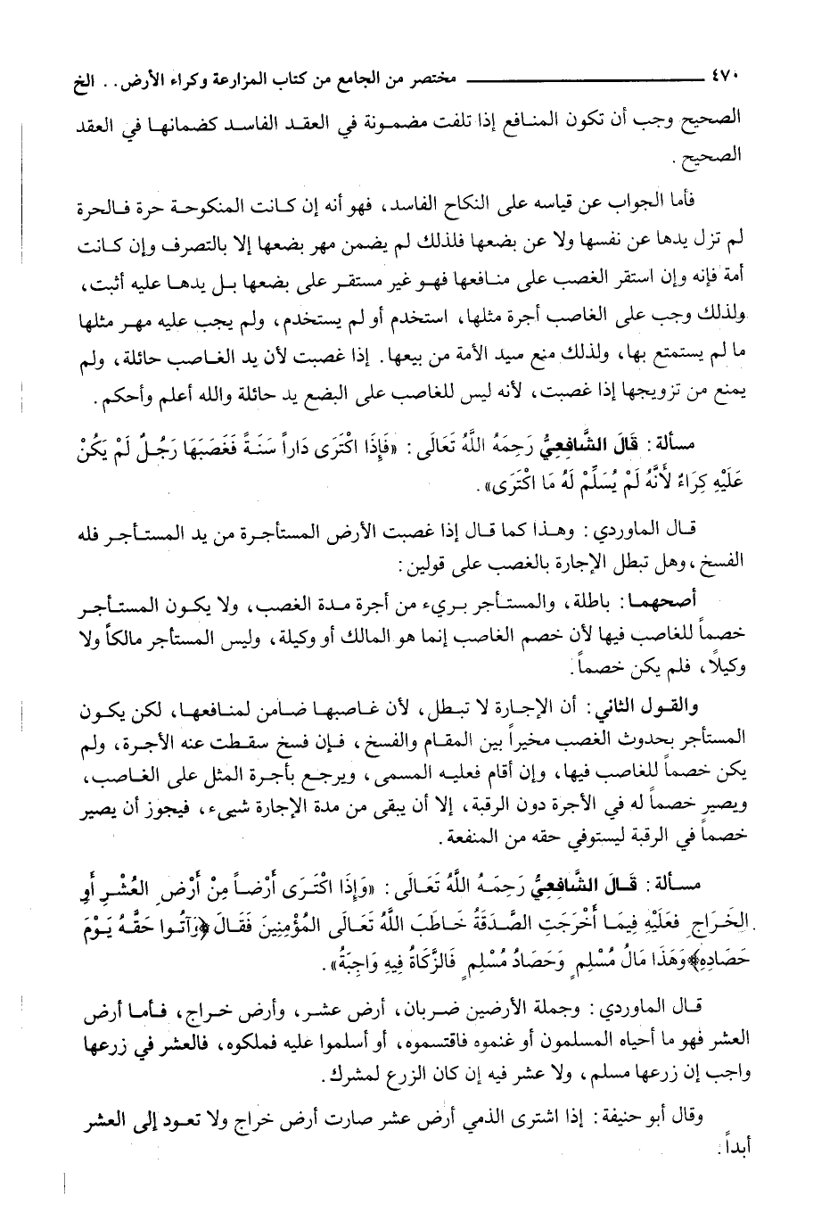 قال الشافعي رحمه الله تعالى: " وَإِذَا اكْتَرَى أَرْضًا مِنْ أَرْضِ الْعُشْرِ أَوِ الْخَرَاجِ فَعَلَيْهِ فِيمَا أخْرِجَتِ الصَّدَقَةُ خَاطَبَ اللَّهُ تَعَالَى الْمُؤْمِنِينَ فَقَالَ {وَآتُوا حَقَّهُ يَوْمَ حَصَادِهِ} وَهَذَا مَالُ مسلمٍ وَحَصَادُ مسلمٍ فَالزَّكَاةُ فِيهِ وَاجِبَةٌ ".