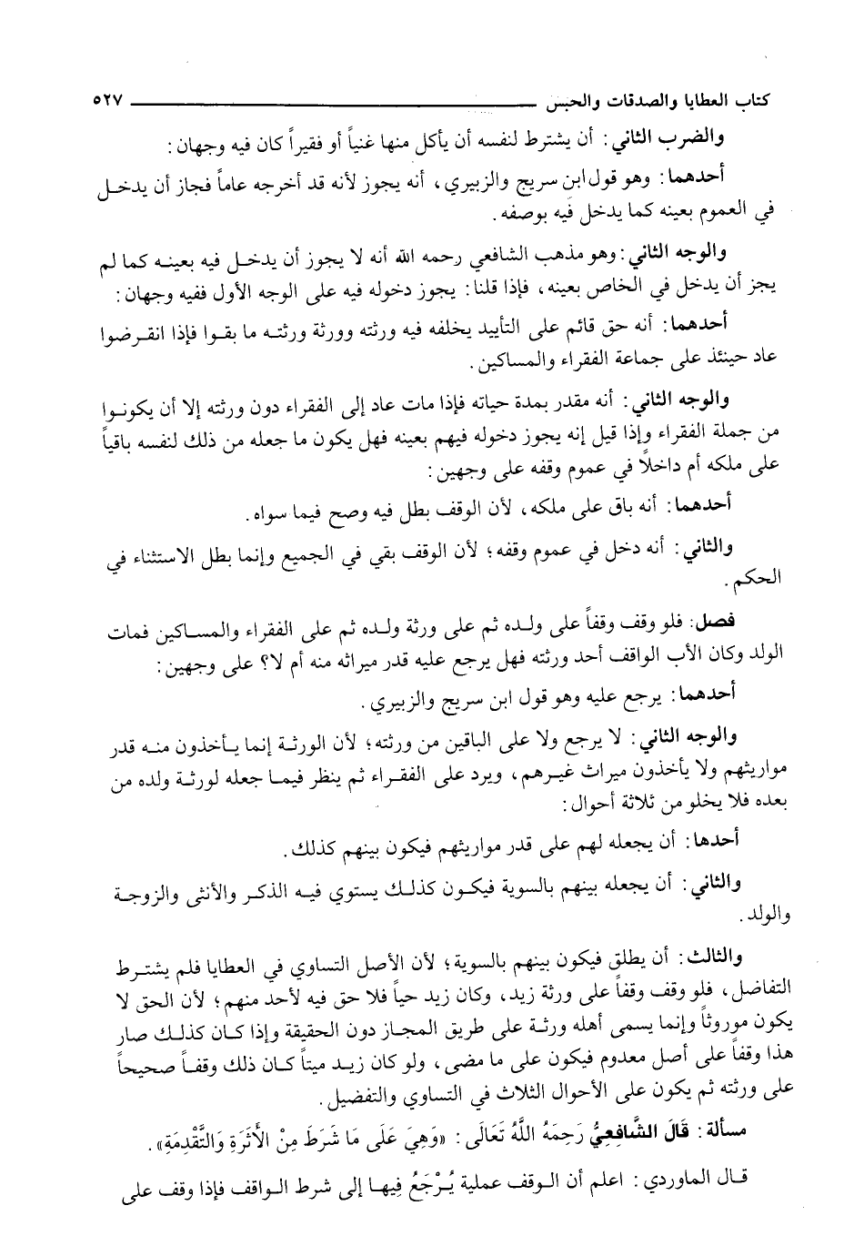 قَالَ الْمَاوَرْدِيُّ: اعْلَمْ أَنَّ الْوَقْفَ عَمَلِيَّةٌ يُرْجَعُ فِيهَا إِلَى شَرْطِ الْوَاقِفِ فَإِذَا وَقَفَ عَلَى