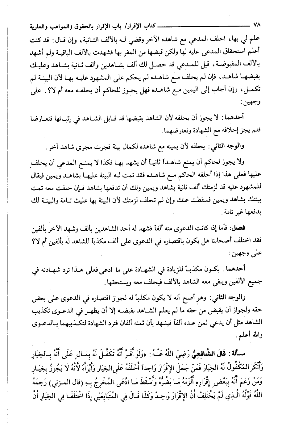 عِلْمَ لِي بِهَا، أُحْلِفَ الْمُدَّعِي مَعَ شَاهِدِهِ الْآخَرِ وَقُضِيَ لَهُ بِالْأَلْفِ الثَّانِيَةِ، وَإِنْ قَالَ: قَدْ كُنْتُ أَعْلَمُ اسْتِحْقَاقَ الْمُدَّعَى عَلَيْهِ لَهَا وَلَكِنْ قَبْضَهَا مِنَ الْمُقِرِّ بِهَا فَشَهِدْتُ بِالْأَلْفِ الْبَاقِيَةِ وَلَمْ أَشْهَدْ بِالْأَلْفِ الْمَقْبُوضَةِ، قِيلَ لِلْمُدَّعِي قَدْ حَصَلَ لَكَ أَلْفٌ بِشَاهِدَيْنِ وَأَلْفٌ ثَانِيَةٌ بِشَاهِدٍ وَعَلَيْكَ بِقَبْضِهَا شَاهِدٌ، فَإِنْ لَمْ يَحْلِفْ مَعَ شَاهِدِهِ لَمْ يُحْكَمْ عَلَى الْمَشْهُودِ عَلَيْهِ بِهَا لِأَنَّ الْبَيِّنَةَ لَمْ تَكْمُلْ، وَإِنْ أَجَابَ إِلَى الْيَمِينِ مَعَ شَاهِدِهِ فَهَلْ يَجُوزُ لِلْحَاكِمِ أَنْ يُحَلِّفَهُ مَعَهُ أَمْ لَا؟ . عَلَى وَجْهَيْنِ: