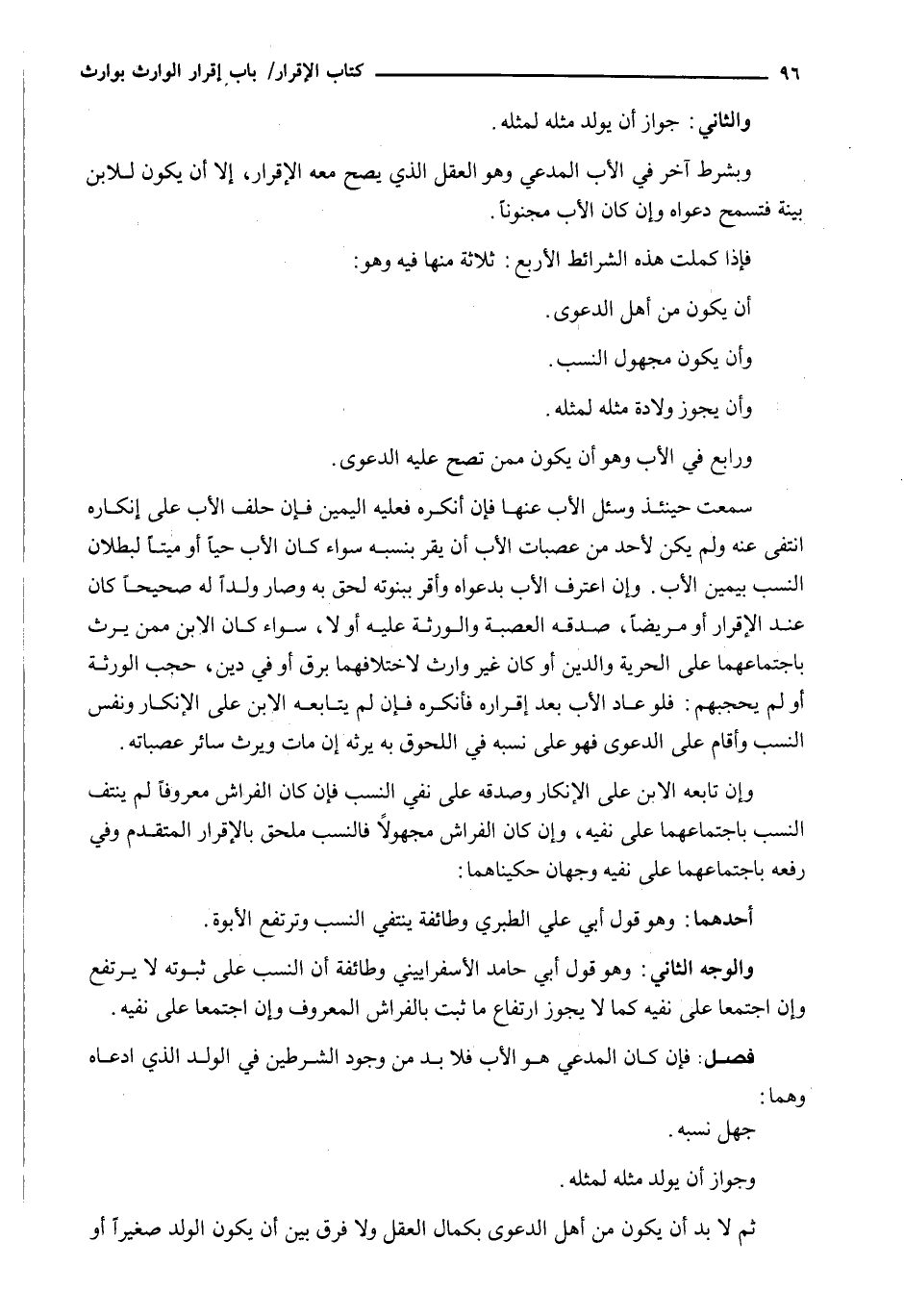 : فَإِنْ كَانَ الْمُدَّعِي هُوَ الْأَبُ فَلَا بُدَّ مِنْ وُجُودِ الشَّرْطَيْنِ فِي الْوَلَدِ الَّذِي ادَّعَاهُ وَهُمَا: