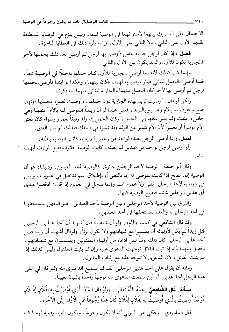 قال الشافعي رحمه الله تعالى: " وَلَوْ قَالَ الْعَبْدُ الَّذِي أَوْصَيْتُ بِهِ لِفُلَانٍ لفلان أو قد أوصيت بالذي أوصيت به لفلان لفلان كان هذا رُجُوعًا عَنِ الْأَوَّلِ إِلَى الْآخَرِ ".