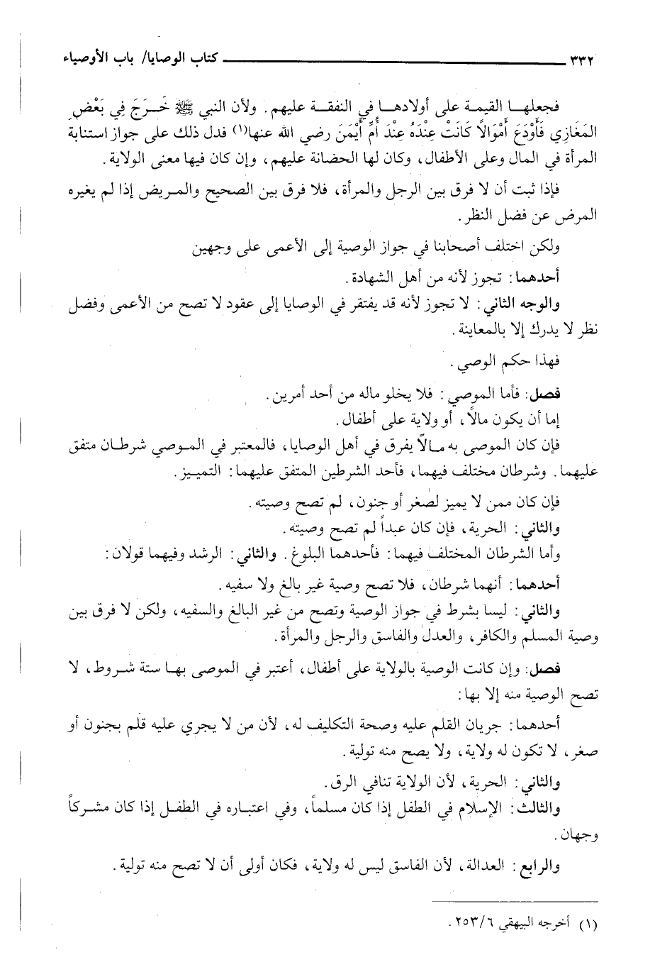 وَالثَّانِي: لَيْسَا بِشَرْطٍ فِي جَوَازِ الْوَصِيَّةِ وَتَصِحُّ مِنْ غَيْرِ الْبَالِغِ وَالسَّفِيهِ، وَلَكِنْ لَا فَرْقَ بَيْنَ وَصِيَّةِ الْمُسْلِمِ وَالْكَافِرِ، وَالْعَدْلِ وَالْفَاسِقِ وَالرَّجُلِ وَالْمَرْأَةِ.