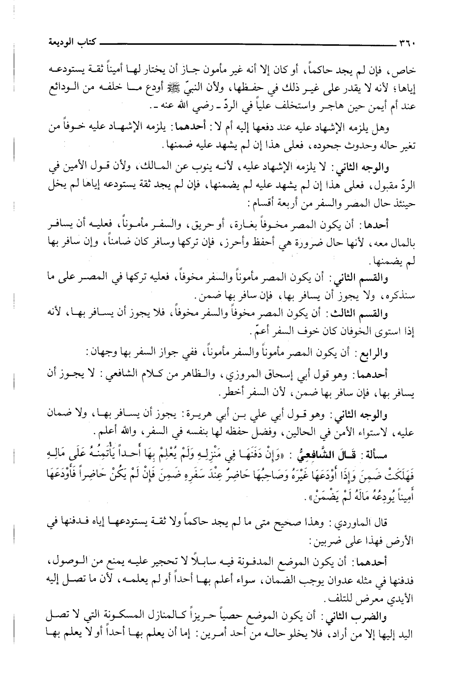 وَهَلْ يَلْزَمُهُ الْإِشْهَادُ عَلَيْهِ عِنْدَ دَفْعِهَا إِلَيْهِ أم لا: أحدهما: يلزمه الإشهاد عليه خوفا من تغير حَالِهِ وَحُدُوثِ جُحُودِهِ، فَعَلَى هَذَا إِنْ لَمْ يشهد عليه ضمنها.