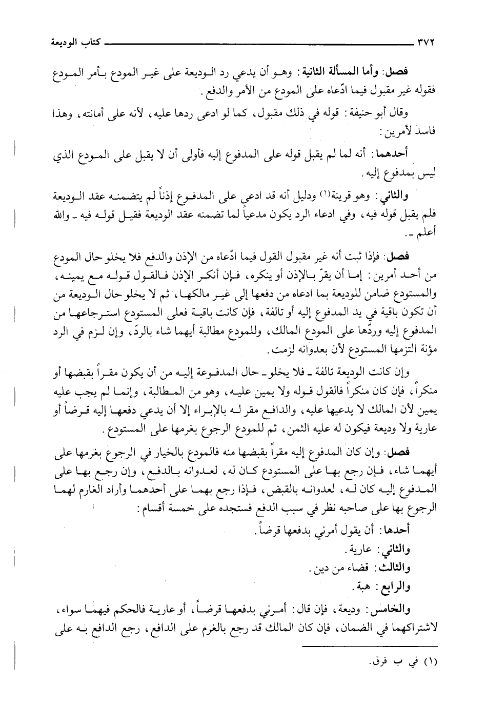 وَالثَّانِي: وَهُوَ قَرِينَةٌ وَدَلِيلٌ أَنَّهُ قَدِ ادَّعَى عَلَى الْمَدْفُوعِ إِذْنًا لَمْ يَتَضَمَّنْهُ عَقْدُ الْوَدِيعَةِ فَلَمْ يُقْبَلْ قَوْلُهُ فِيهِ، وَفِي ادِّعَاءِ الرَّدِّ يَكُونُ مُدَّعِيًا لِمَا تَضَمَّنَهُ عَقْدُ الْوَدِيعَةِ فَقِيلَ قَوْلُهُ فِيهِ - وَاللَّهُ أَعْلَمُ -.