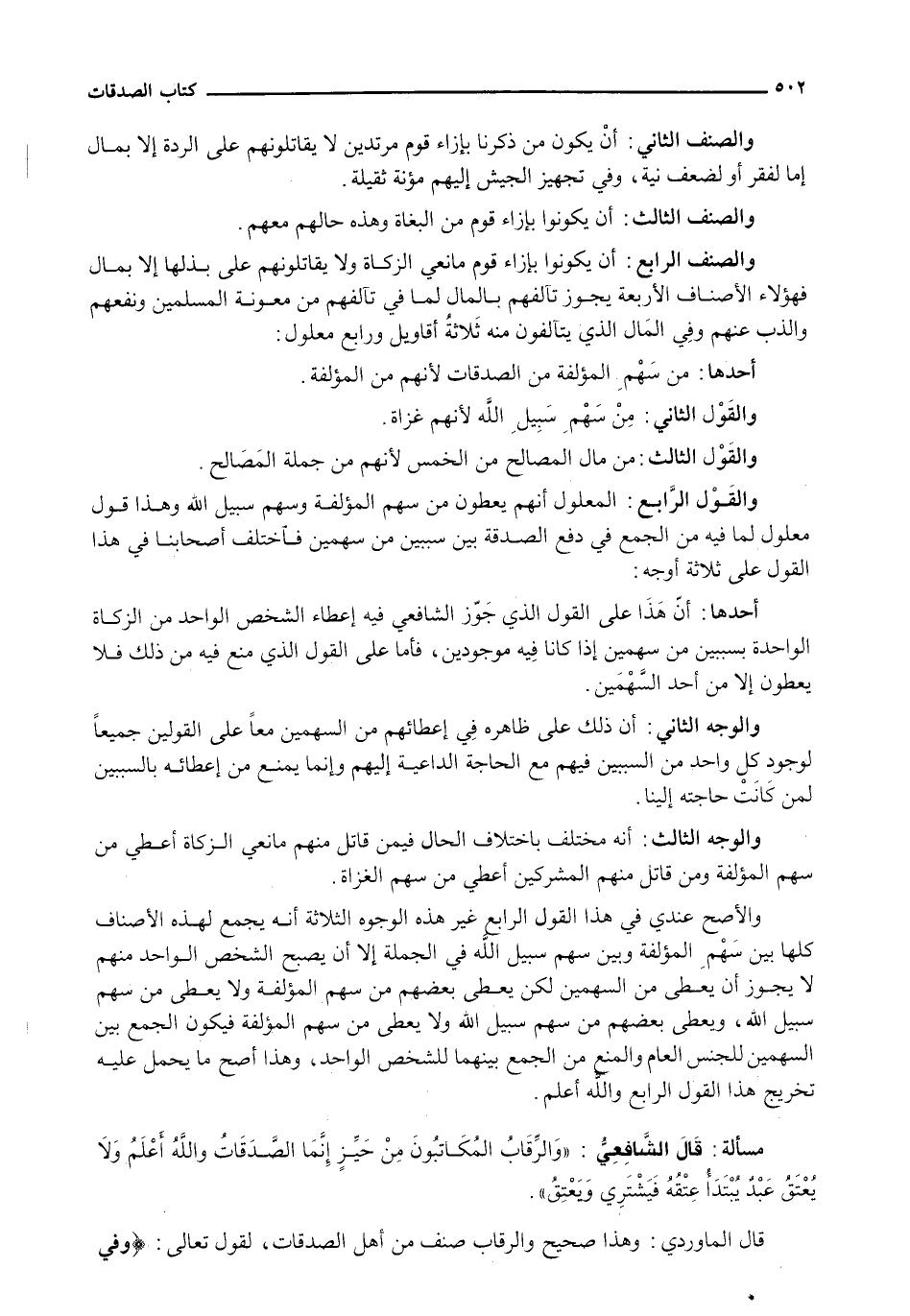 قَالَ الْمَاوَرْدِيُّ: وَهَذَا صَحِيحٌ وَالرِّقَابُ صِنْفٌ مِنْ أَهْلِ الصَّدَقَاتِ، لِقَوْلِهِ تَعَالَى: {وَفِي