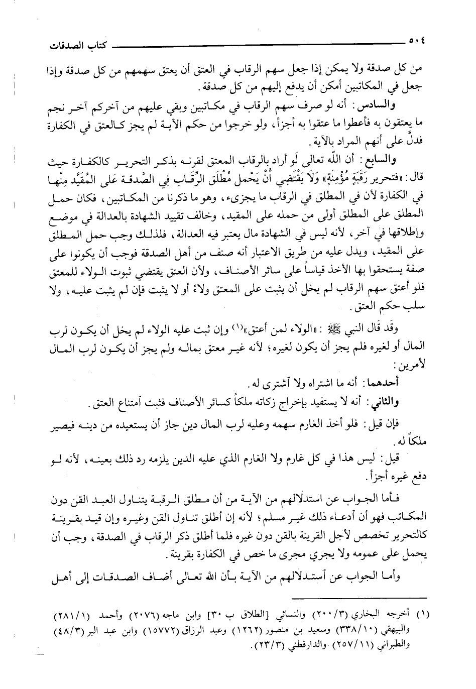 مِنْ كُلِّ صَدَقَةٍ وَلَا يُمْكِنُ إِذَا جَعَلَ سَهْمَ الرِّقَابِ فِي الْعِتْقِ أَنْ يُعْتِقَ سَهْمَهُمْ مِنْ كُلِّ صَدَقَةٍ وَإِذَا جُعِلَ فِي الْمُكَاتَبِينَ أَمْكَنَ أَنْ يُدْفَعَ إِلَيْهِمْ مِنْ كُلِّ صَدَقَةٍ.