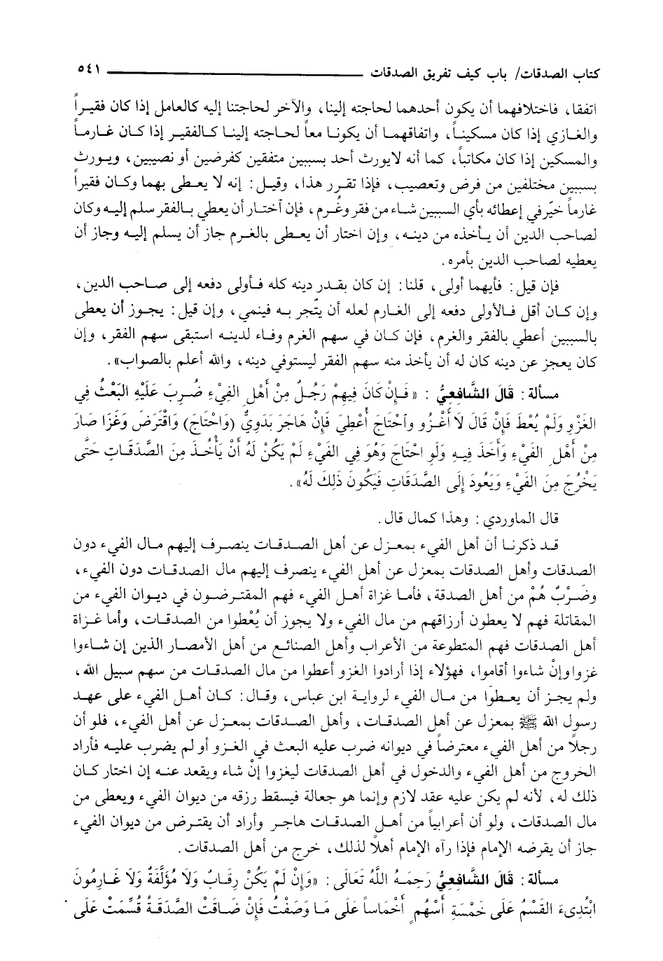 قال الشافعي: " فَإِنْ كَانَ فِيهِمْ رَجُلٌ مِنْ أَهْلِ الْفَيْءِ ضُرِبَ عَلَيْهِ الْبَعْثُ فِي الْغَزْوِ وَلَمْ يُعْطَ فَإِنْ قَالَ لَا أَغْزُو وَاحْتَاجَ أُعْطِيَ فَإِنْ هَاجَرَ بَدَوِيٌّ (وَاحتَاجَ) وَاقْتَرَضَ وَغَزَا صَارَ مِنْ أهل الفيء وأخذ فيه ولو احْتَاجَ وَهُوَ فِي الْفَيْءِ لَمْ يَكُنْ لَهُ أَنْ يَأْخُذَ مِنَ الصَّدَقَاتِ حَتَّى يَخْرُجَ مِنَ الْفَيْءِ وَيَعُودَ إِلَى الصَّدَقَاتِ فَيَكُونُ ذَلِكَ لَهُ ".
