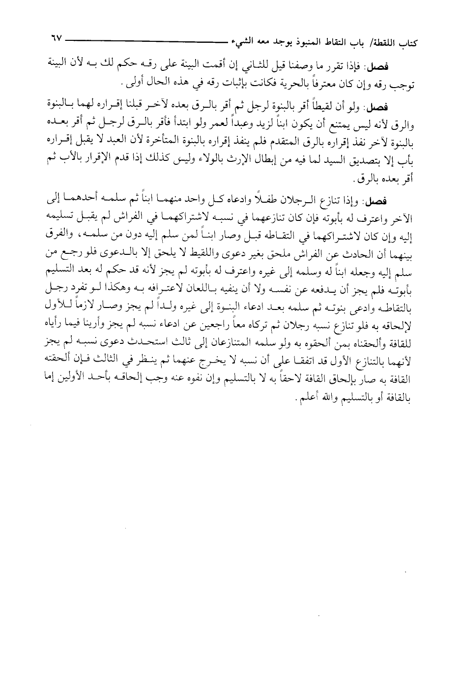 وَإِذَا تَنَازَعَ الرَّجُلَانِ طِفْلًا وَادَّعَاهُ كُلُّ وَاحِدٍ مِنْهُمَا ابْنًا ثُمَّ سَلَّمَهُ أَحَدُهُمَا إِلَى الْآخَرِ وَاعْتَرَفَ لَهُ بِأُبُوَّتِهِ فَإِنْ كَانَ تَنَازُعُهُمَا فِي نَسَبِهِ لِاشْتِرَاكِهِمَا فِي الْفِرَاشِ لَمْ يُقْبَلْ تَسْلِيمُهُ إِلَيْهِ وَإِنْ كَانَ لِاشْتِرَاكِهِمَا فِي الْتِقَاطِهِ قُبِلَ وَصَارَ ابْنًا لِمَنْ سُلِّمَ إِلَيْهِ دُونَ مَنْ سَلَّمَهُ، وَالْفَرْقُ بَيْنَهُمَا أَنَّ الْحَادِثَ عَنِ الْفِرَاشِ مُلْحَقٌ بِغَيْرِ دَعْوَى وَاللَّقِيطُ لَا يُلْحَقُ إِلَّا بِالدَّعْوَى فَلَوْ رَجَعَ مَنْ سَلَّمَ إِلَيْهِ وَجَعَلَهُ ابْنًا لَهُ وَسَلَّمَهُ إِلَى غَيْرِهِ وَاعْتَرَفَ لَهُ بِأُبُوَّتِهِ لَمْ يَجُزْ لِأَنَّهُ قَدْ حَكَمَ لَهُ بَعْدَ التَّسْلِيمِ بِأُبُوَّتِهِ فَلَمْ يَجُزْ أَنْ يَدْفَعَهُ عَنْ نَفْسِهِ وَلَا أَنْ يَنْفِيَهُ بِاللِّعَانِ لِاعْتِرَافِهِ بِهِ وَهَكَذَا لَوْ تَفَرَّدَ رَجُلٌ بِالْتِقَاطِهِ وَادَّعَى بُنُوَّتَهُ ثُمَّ سَلَّمَهُ بَعْدَ ادِّعَاءِ الْبُنُوَّةِ إِلَى غَيْرِهِ وَلَدًا لَمْ يَجُزْ وَصَارَ لَازِمًا لِلْأَوَّلِ لِإِلْحَاقِهِ بِهِ فَلَوْ تَنَازَعَ نَسَبَهُ رَجُلَانِ ثُمَّ تَرَكَاهُ مَعًا رَاجِعَيْنِ عَنِ ادِّعَاءِ نَسَبِهِ لَمْ يَجُزْ وَأَرَيْنَا فِيمَا رَأَيَاهُ لِلْقَافَةِ وَأَلْحَقْنَاهُ بِمَنْ أَلْحَقُوهُ بِهِ وَلَوْ سَلَّمَهُ الْمُتَنَازِعَانِ إِلَى ثَالِثٍ اسْتُحْدِثَ دَعْوَى نَسَبِهِ لَمْ يَجُزْ لِأَنَّهُمَا بِالتَّنَازُعِ الْأَوَّلِ قَدِ اتَّفَقَا عَلَى أَنَّ نَسَبَهُ لَا يَخْرُجُ عَنْهُمَا ثُمَّ يُنْظَرُ فِي الثَّالِثِ فَإِنْ أَلْحَقَتْهُ الْقَافَةُ بِهِ صَارَ بِإِلْحَاقِ القافة لاحقا به لا بالتسليم وإن تفوه عَنْهُ وَجَبَ إِلْحَاقُهُ بِأَحَدِ الْأَوَّلَيْنِ إِمَّا بِالْقَافَةِ أو بالتسليم والله أعلم.