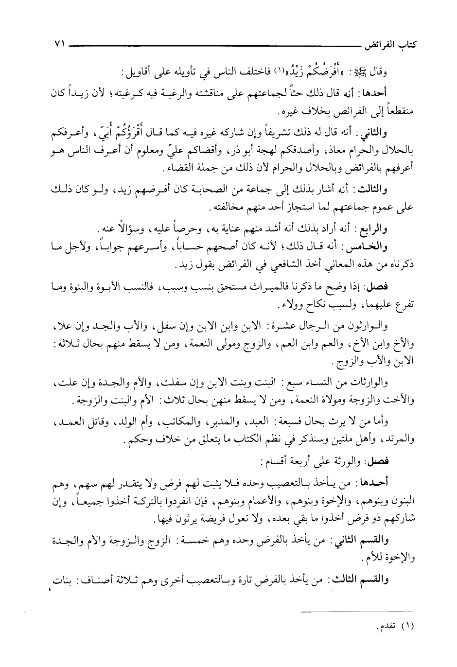 وقال - صَلَّى اللَّهُ عَلَيْهِ وَسَلَّم َ -: " أَفْرَضُكُمْ زَيْدٌ " فَاخْتَلَفَ النَّاسُ فِي تَأْوِيلِهِ عَلَى أَقَاوِيلَ: