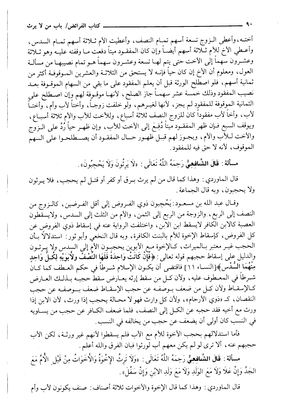 قال الشافعي رحمه الله تعالى: " لَا يَرِثُونَ وَلَا يَحْجُبُونَ ".