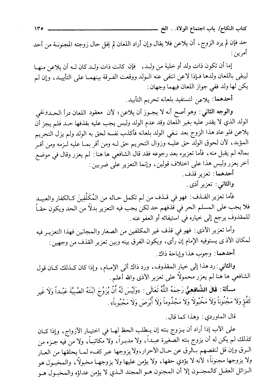 حد فإن لم يرد الزوج، أم يُلَاعِنَ فَلَا يُقَالُ وَإِنْ أَرَادَ اللِّعَانَ لَمْ يَخْلُ حَالُ زَوْجَتِهِ الْمَجْنُونَةِ مِنْ أَحَدِ أَمْرَيْنِ: