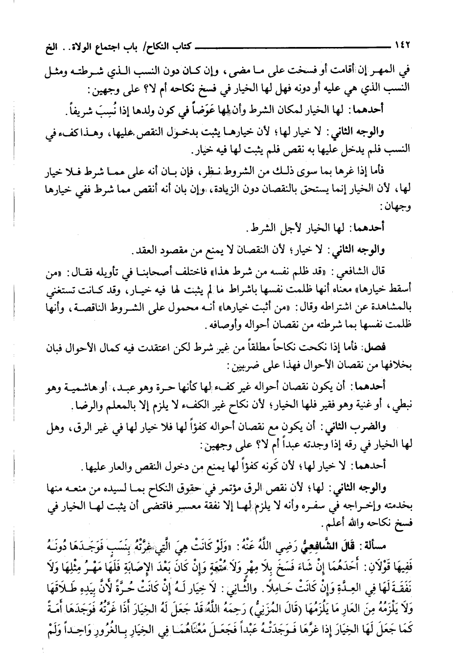 وَالضَّرْبُ الثَّانِي: أَنْ يَكُونَ مَعَ نُقْصَانِ أحواله كفؤاً لَهَا فَلَا خِيَارَ لَهَا فِي غَيْرِ الرِّقِّ، وَهَلْ لَهَا الْخِيَارُ فِي رِقِّهِ إِذَا وَجَدَتْهُ عَبْدًا أَمْ لَا؟ عَلَى وَجْهَيْنِ: