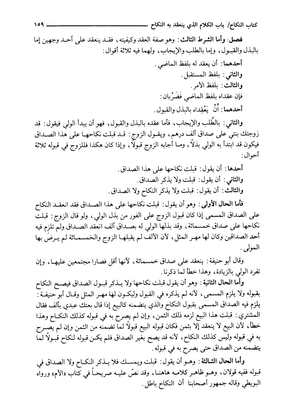 وَأَمَّا الشَّرْطُ الثَّالِثُ: وَهُوَ صِفَةُ الْعَقْدِ وَكَيْفِيَّتِهِ، فَقَدْ يَنْعَقِدُ عَلَى أَحَدِ وَجْهَيْنِ إِمَّا بِالْبَذْلِ وَالْقَبُولِ، وَإِمَّا بِالطَّلَبِ وَالْإِيجَابِ، وَلَهُمَا فِيهِ ثلاثة أقوال: